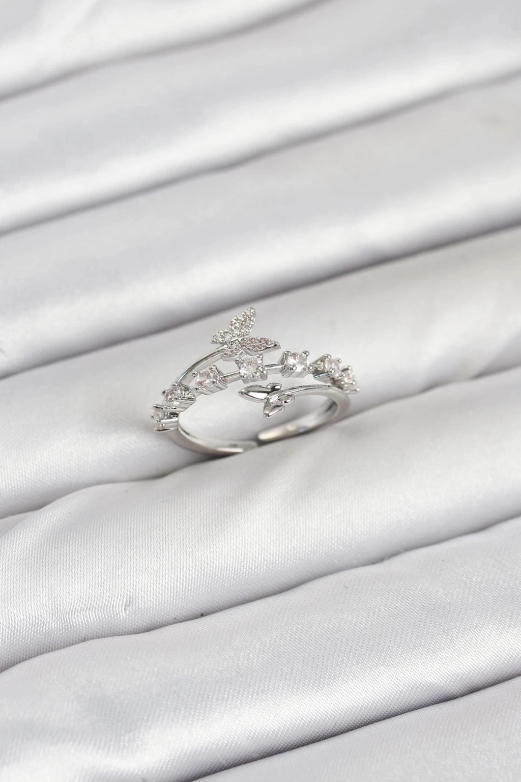 BFS Pirinç Gümüş Renk Zirkon Taşlı Kelebek Model Kadın Yüzük