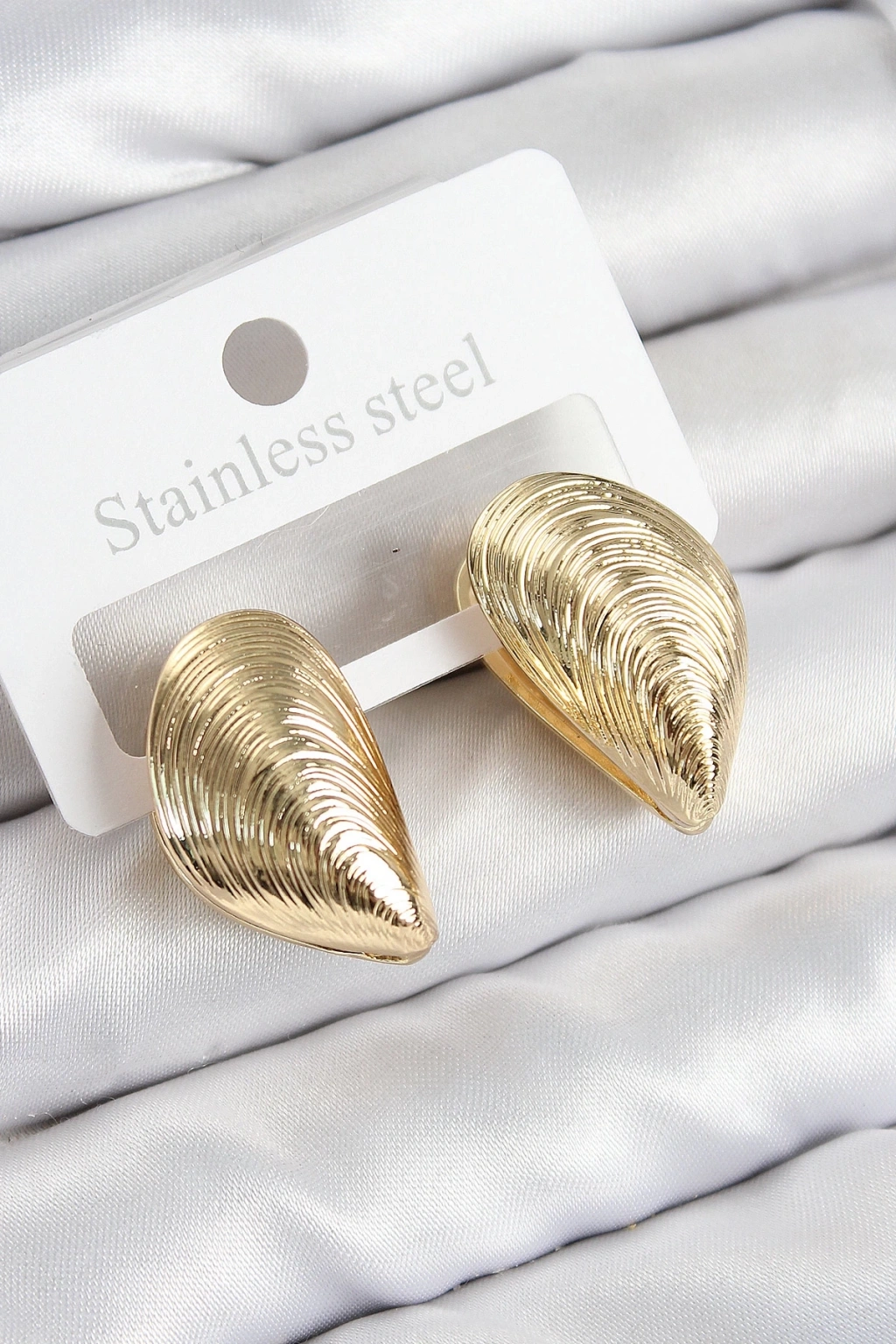 BFS Pirinç İstiridye Model Gold Renk Kadın Küpe
