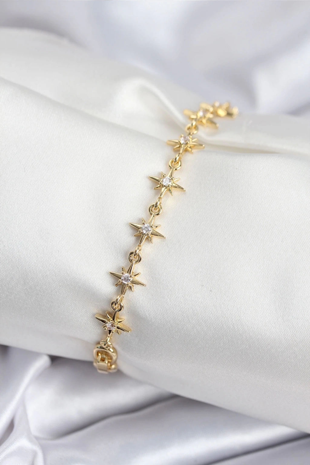 BFS Pirinç VIP Seri Gold Renk Sıralı Kutup Yıldızı Kadın Bileklik