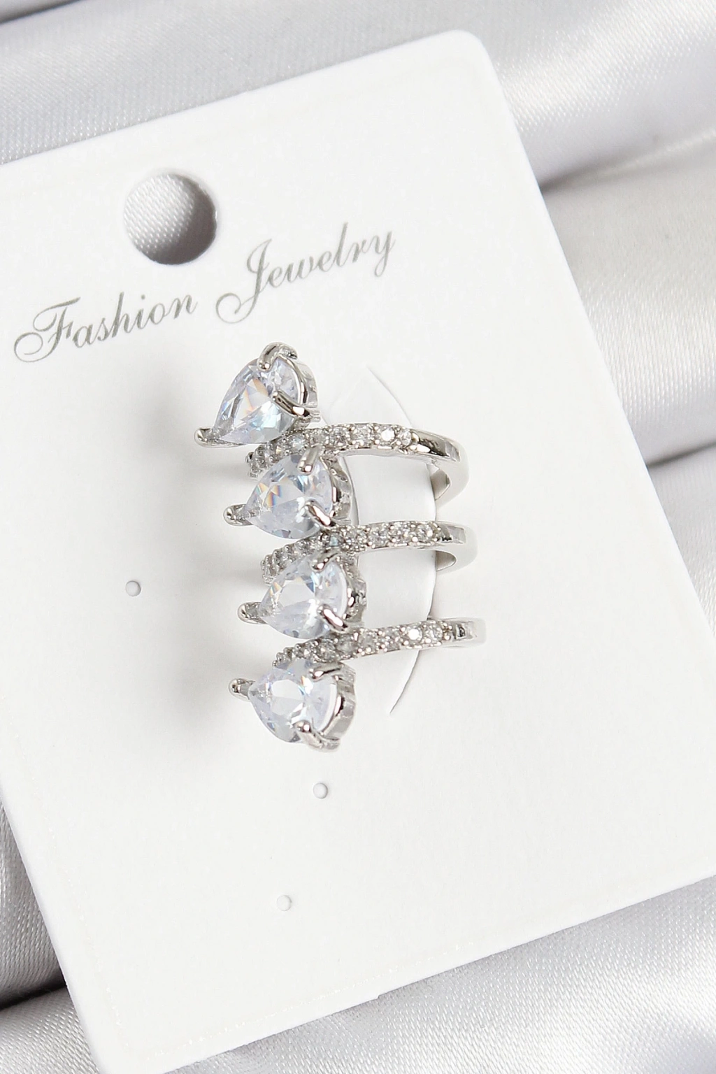 BFS Pirinç Zirkon Taşlı Damla Model Gümüş Renk Sağ Kıkırdak Küpe