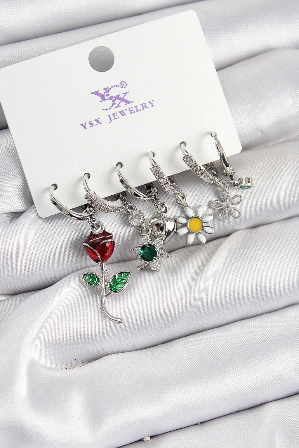 BFS Pirinç Zİrkon Taşlı Gül Ve Papatya Model Gümüş Renk 3'lü Çift Kadın Küpe