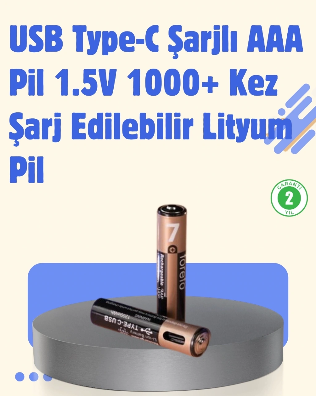 BFS USB Type-C Şarjlı AAA Lityum Pil | 1.5V Sabit Voltaj, 1000+ Şarj Döngüsü ile Uzun Ömür