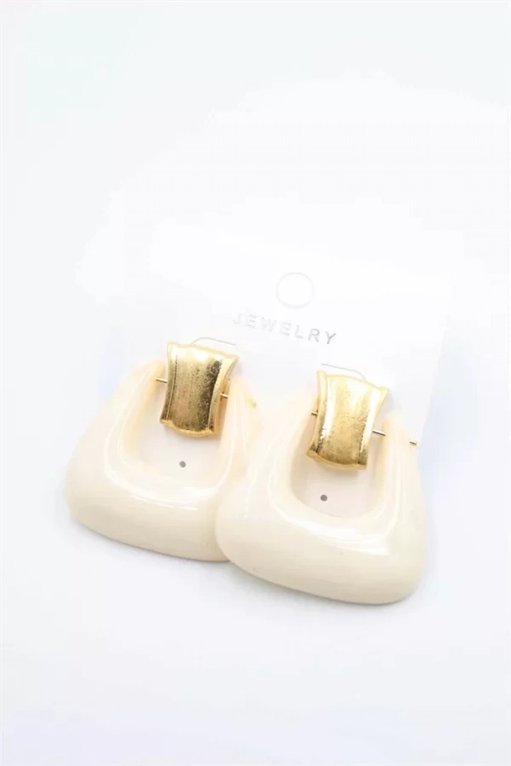 Taşlı Küpe - Krem