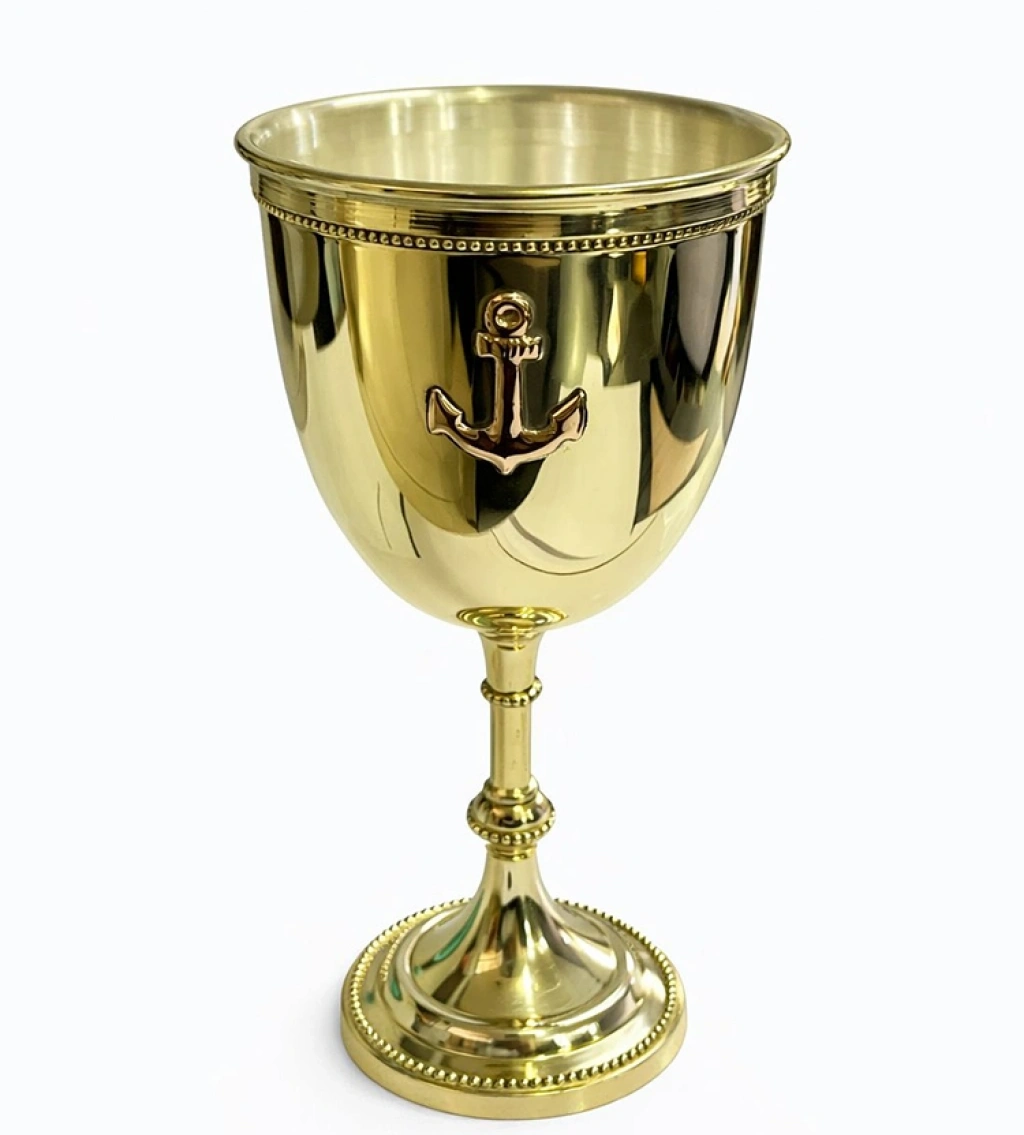 ÇAPA DESENLİ PİRİNÇ KADEH BARDAK Ürün ÖzellikleriSofralarınıza asalet ve keşif ruhu katmaya hazır olun! Çapa Desenli Pirinç Kadeh Bardak, denizlerin zamansız zarafetini pirincin parlaklığıyla buluşturuyor. Yüksek kaliteli parlak pirinç malzemeden üretilen bu özel kadeh, gövdesinde yer alan ince işlenmiş çapa figürüyle marin (nautical) temasını en şık şekilde yansıtıyor. 19x9 cm boyutlarındaki ergonomik ve estetik yapısı, elinize tam oturan ağırlığıyla kalite hissini her dokunuşta yaşatıyor. Sadece bir içecek sunum kadehi değil, aynı zamanda kütüphanenizde, ofisinizde veya vitrininizde sergileyebileceğiniz görkemli bir dekoratif objedir. Nostaljik tasarımı ve altın sarısı parıltısıyla antik bir hazineyi andıran bu kadeh; deniz tutkunları, yelkenciler ve klasik aksesuarlardan vazgeçemeyenler için paha biçilemez bir hediye seçeneğidir. Sofralarınızda fark yaratacak bu pirinç parça, her yudumu bir kutlamaya dönüştürecek.Ürün Teknik ÖzellikleriÖzellikAçıklamaÜrün AdıÇapa Desenli Pirinç Kadeh BardakBoyutlar19 cm (Yükseklik) x 9 cm (Genişlik)MalzemeYüksek Kaliteli Parlak PirinçTasarımMarin Temalı (Çapa Kabartmalı)Kullanım Alanıİçecek Sunumu, Dekorasyon, KoleksiyonStilNostaljik, Denizci, PrestijliBakımNemli bezle temizlenmesi önerilirPaket İçeriği1 Adet Çapa Desenli Pirinç Kadeh Bardak