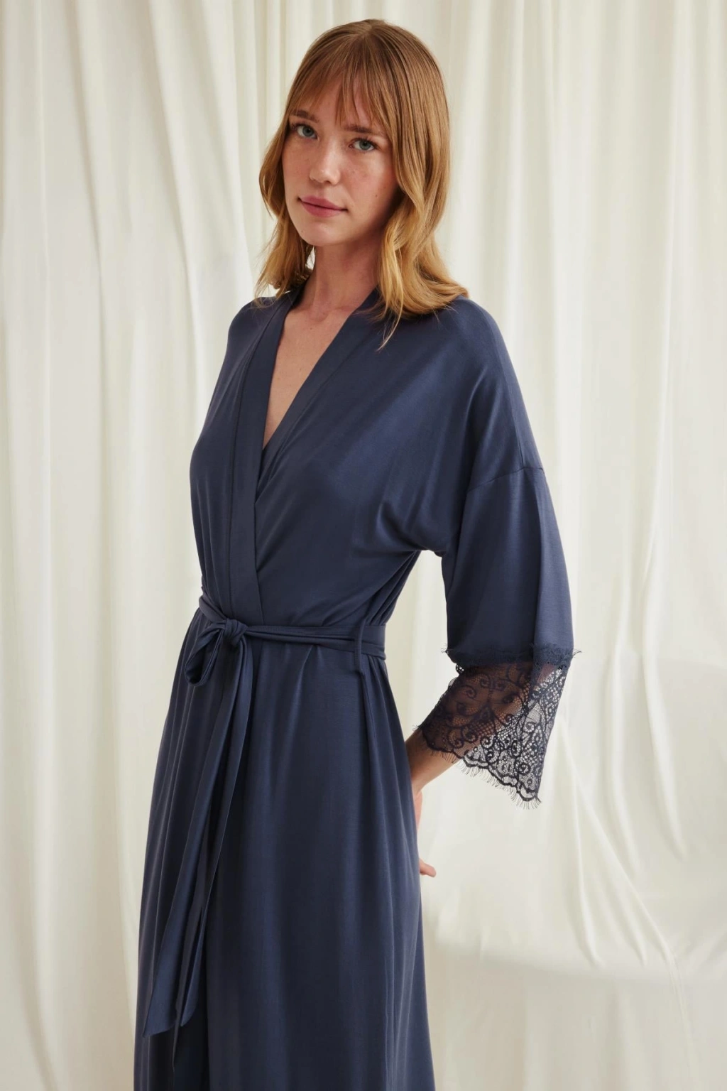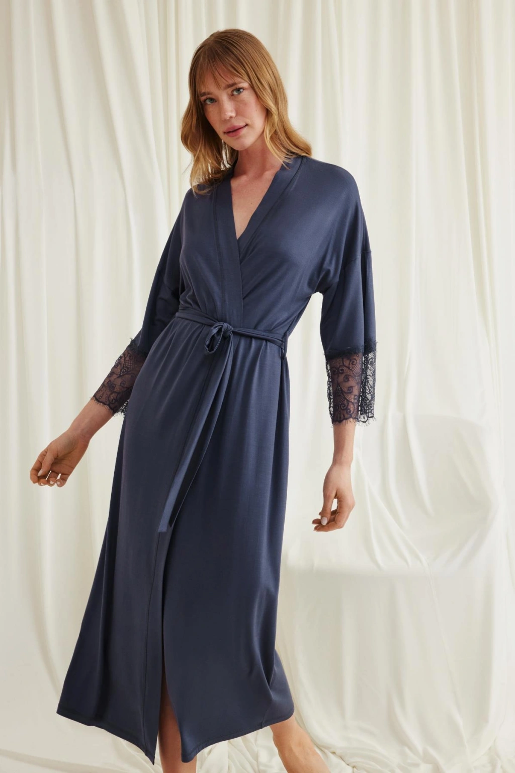 Sabahlık: Lacivert renklidir, kol ağzı dantellidir, truvakar kolludur, kuşaklıdır, örme kumaştır.