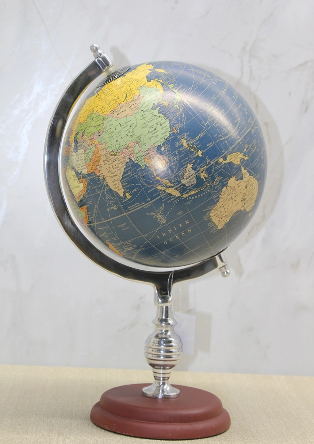 DEKORATİF MASAÜSTÜ DÜNYA KÜRE - MODEL 14Ürün ÖzellikleriDekoratif Masaüstü Dünya Küre - Model 14, koyu mavi okyanus tonları ve altın sarısı kıta detayları ile güçlü bir kontrast sunarak klasik atlas tasarımına daha iddialı bir görünüm kazandırır. 38x21 cm ölçüsü sayesinde masa üzerinde dengeli bir yükseklik oluşturur ve bulunduğu alanda dikkat çekici bir odak noktası haline gelir. Derin lacivert zemin, harita detaylarını daha belirgin hale getirirken, alt kısmındaki kırmızımsı ahşap görünümlü kaide tasarımı ürüne klasik ve zamansız bir karakter katar. Metal meridyen halkası ile tamamlanan yapı, hem estetik hem de sağlam bir duruş sağlar. lacivert atlas dünya küre arayan kullanıcılar için ideal olan bu model, yönetici masası, çalışma odası, ofis konsolu veya kitaplık üzerinde prestijli bir dekoratif obje olarak konumlandırılabilir. Hem modern hem klasik dekorasyon stilleriyle uyum sağlayan dekoratif masaüstü dünya küre, entelektüel bir atmosfer oluşturmak ve çalışma alanına karakter katmak isteyenler için şık bir tercihtir.Ürün Teknik ÖzellikleriÖzellikAçıklamaÜrün AdıDekoratif Masaüstü Dünya Küre - Model 14Boyut38 x 21 cmKullanım TürüMasaüstüTasarımKoyu Mavi AtlasKullanım AlanıEv, Ofis, Çalışma AlanıPaket İçeriği1 Adet Dekoratif Masaüstü Dünya Küre - Model 14