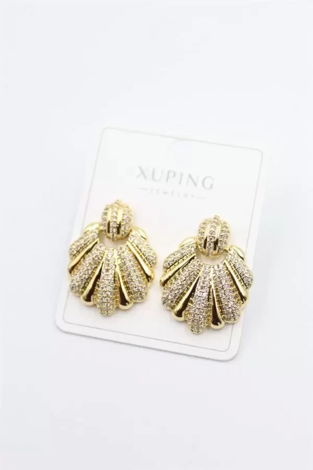 Taşlı Çoklu Görünümlü Küpe - Altın