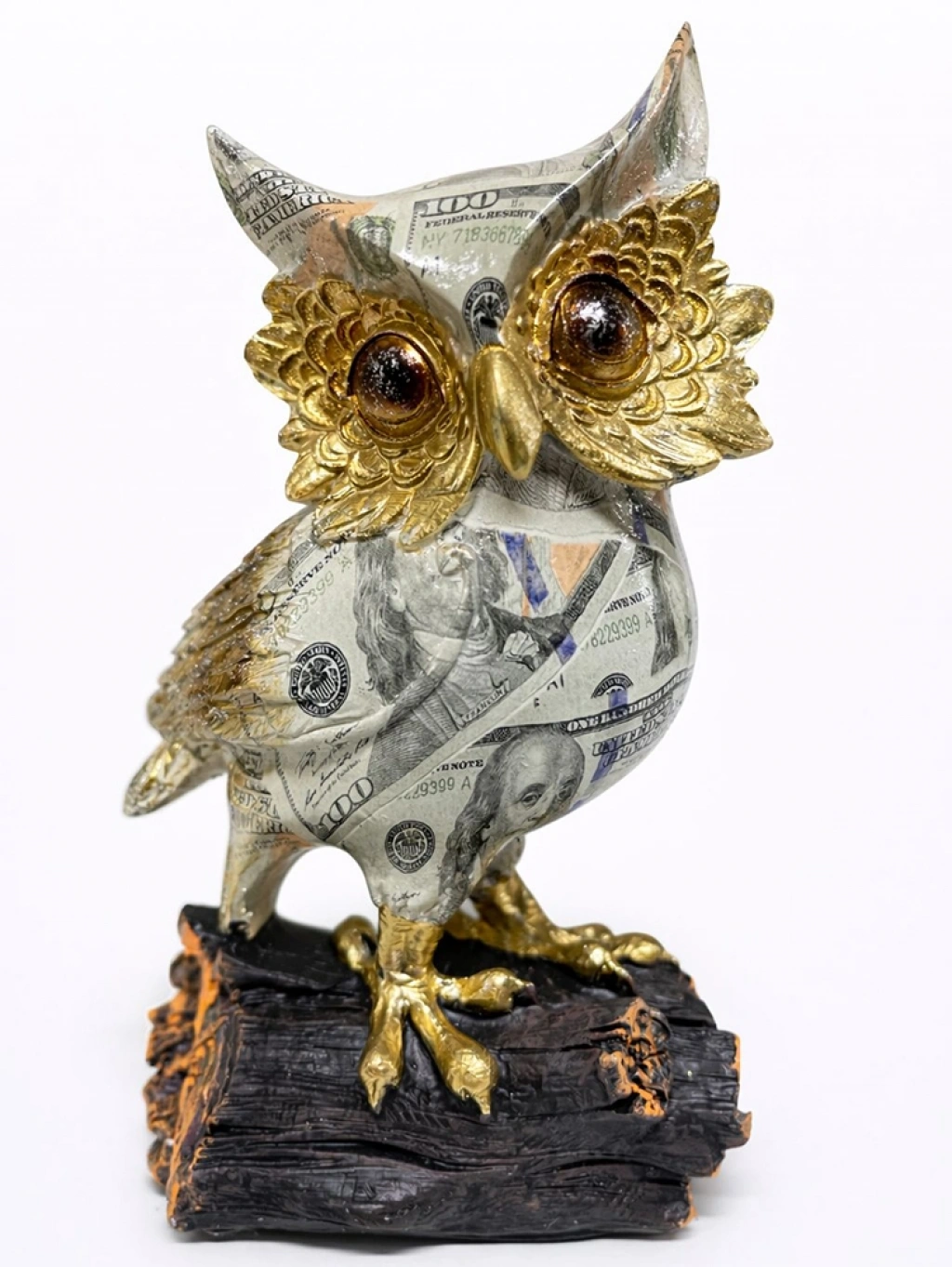 DOLAR BASKILI ÖZEL TASARIM POLYESTER BAYKUŞ – 17X10 CMÜrün ÖzellikleriDolar baskılı özel tasarım polyester baykuş figürü, dekorasyona hem güçlü bir sembol hem de dikkat çekici bir stil kazandırmak isteyenler için özenle hazırlanmıştır. 17x10 cm ölçüsündeki kompakt yapısı sayesinde masa üstü, raf, vitrin, ofis masası veya kitaplık gibi alanlarda rahatlıkla kullanılabilir. Bilgelik, güç ve farkındalık simgesi olan baykuş figürü, üzerindeki dolar temalı detaylarla birlikte bolluk, bereket ve finansal başarı vurgusu yaparak dekoratif değerini bir adım öteye taşır. Dayanıklı polyester malzemeden üretilmiş olması uzun ömürlü kullanım sunarken, detaylı yüz ifadesi ve tüy dokusu figüre gerçekçi ve estetik bir görünüm kazandırır. Özenli boyama tekniği sayesinde renkler canlılığını korur ve bulunduğu ortama prestijli bir hava katar. Ev dekorasyonunda farklılık arayanlar, ofisinde güçlü bir sembol kullanmak isteyenler veya anlamlı ve şık bir hediye alternatifi arayanlar için ideal bir dekoratif figürdür.Paket İçeriği1 adet Dolar Baskılı Özel Tasarım Polyester Baykuş Figürü (17x10 cm)