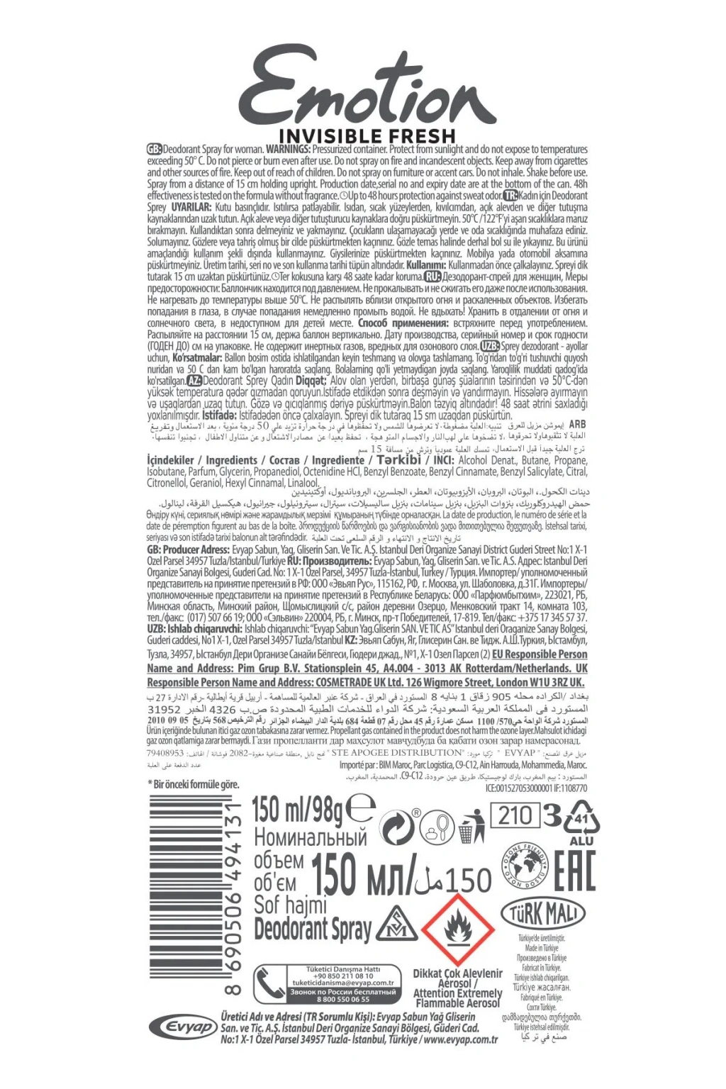 Emotion Invisible Fresh Black & White Kadın Deodorant 150ml Vegan, Leke Bırakmaz