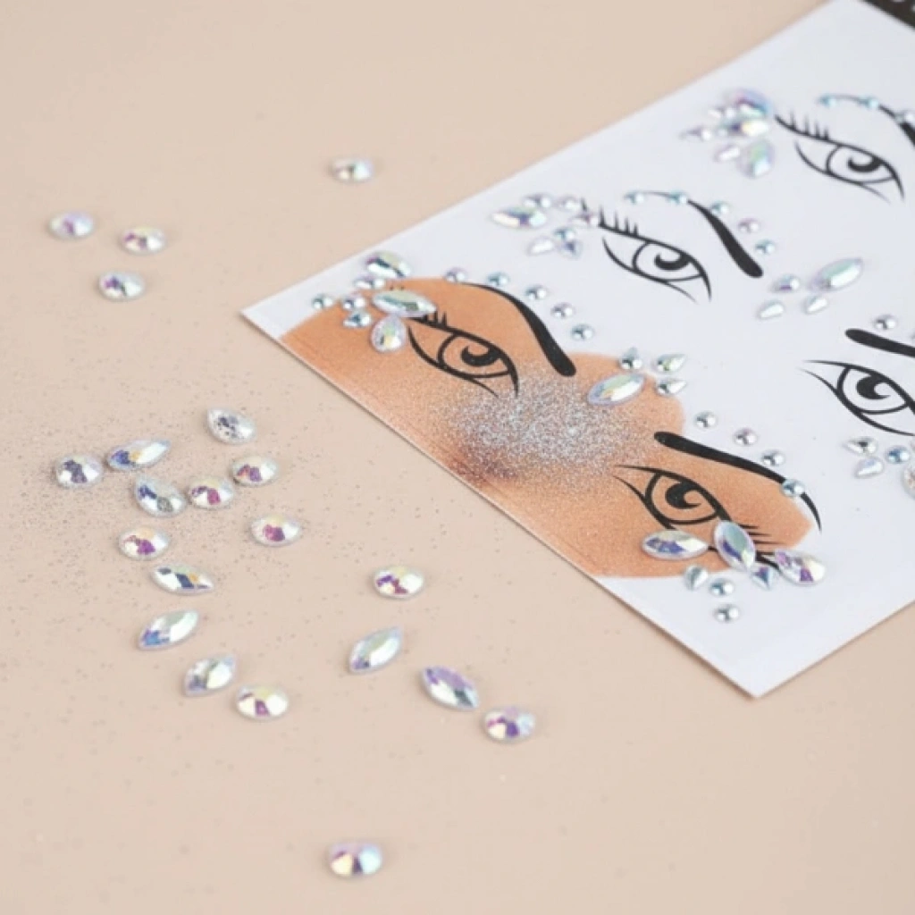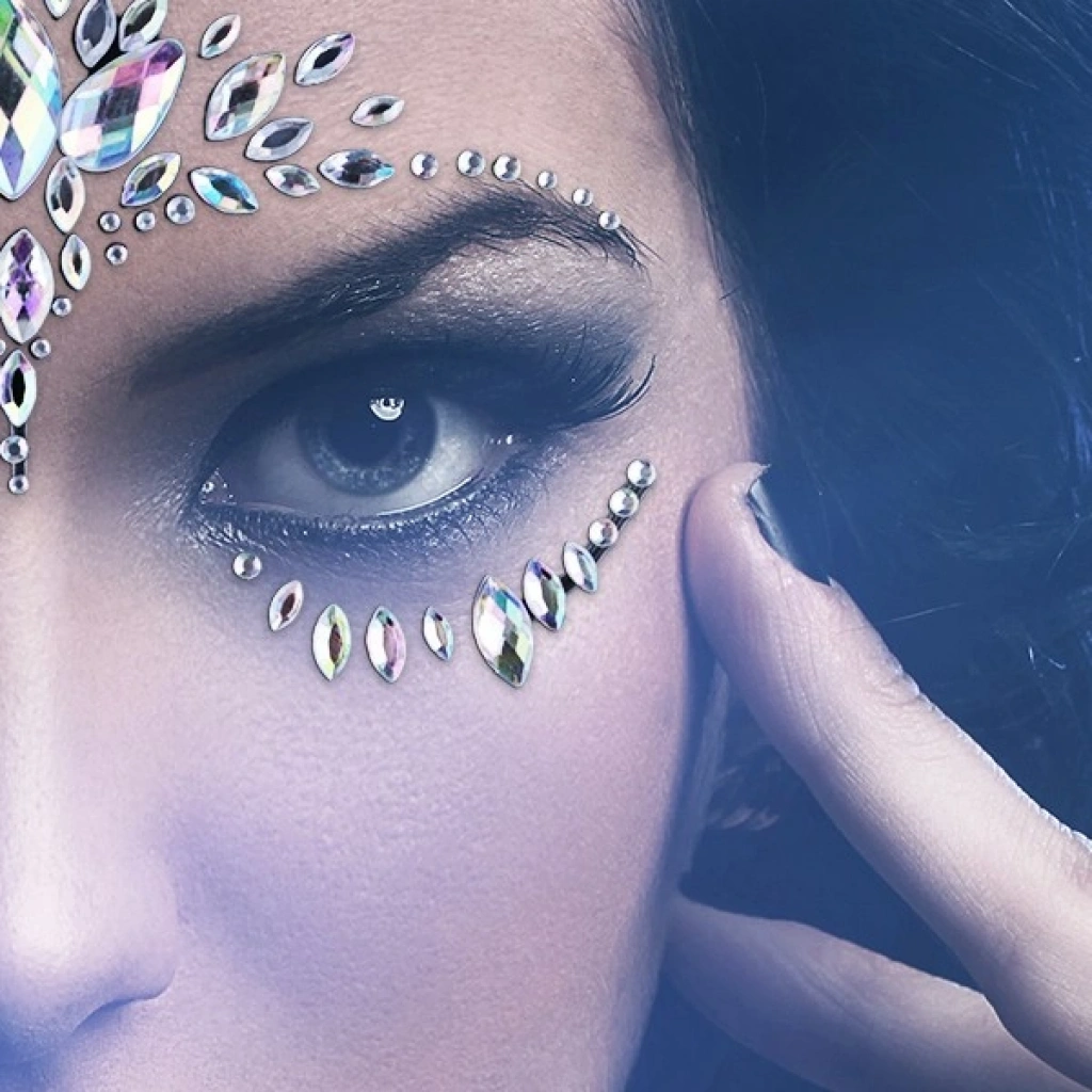 GÜMÜŞ TAŞLI MAKYAJ YÜZ SÜSÜÜrün ÖzellikleriGümüş taşlı makyaj yüz süsü, “Face Jewels” tasarımı ile hazırlanan dekoratif bir makyaj aksesuarıdır. Ürün, göz çevresi ve kaş üstü bölgesine uygun şekilde konumlandırılmış çoklu taş dizilimlerinden oluşur. Parlak yüzeyli gümüş taş detayları ışığı yansıtan bir görünüm sunar ve yüz makyajında dikkat çekici bir etki oluşturur. Simetrik formda hazırlanan taş yerleşimi, her iki göz çevresinde dengeli bir görünüm sağlar. Farklı boyutlardaki taş kombinasyonu sayesinde tek parça halinde bütüncül bir tasarım sunar. Özel gün makyajlarında, festival stilinde veya sahne makyajında kullanılabilecek Face Jewels yüz süsü, makyaja ışıltılı ve belirgin bir dokunuş kazandırır.Ürün Teknik Özellikleri Özellik Açıklama Ürün Adı Gümüş Taşlı Makyaj Yüz Süsü Model Face Jewels Renk Gümüş Tasarım Simetrik taş dizilimi Kullanım Alanı Göz çevresi ve kaş üstü Paket İçeriği1 adet gümüş taşlı makyaj yüz süsü