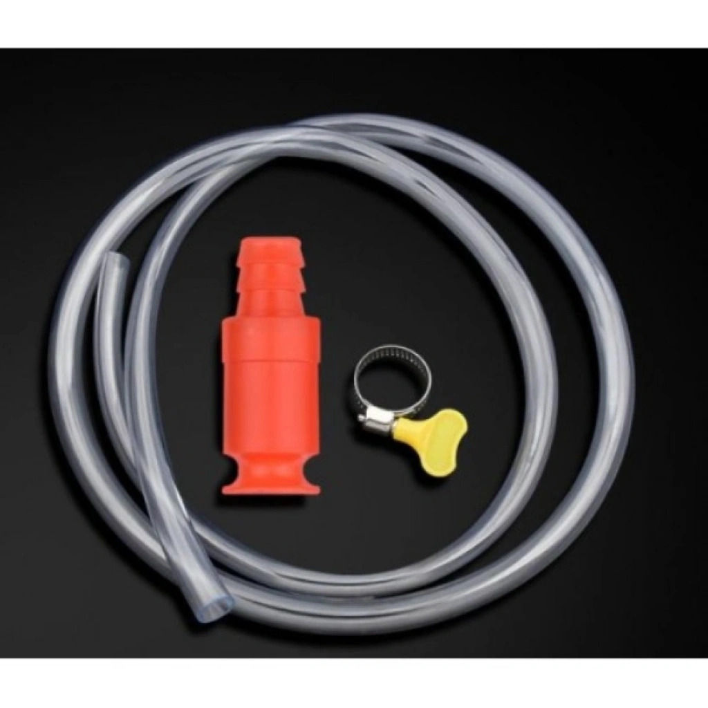 HORTUMLU SIVI AKTARMA APARATI 150 CMÜrün ÖzellikleriHortumlu sıvı aktarma aparatı, benzin, mazot, su, yağ ve benzeri sıvıların bir kaptan başka bir kaba hızlı, kontrollü ve dökülmeden aktarılabilmesi için tasarlanmıştır. Şeffaf yapıya sahip esnek hortumu sayesinde sıvı akışı net şekilde gözlemlenebilir ve aktarım süreci kolayca kontrol altında tutulur. Sifon sistemiyle çalıştığı için elektrik veya manuel pompalama gerektirmez; aparatı yukarı aşağı hareket ettirmek yeterlidir. Dayanıklı ve bükülmeye karşı dirençli hortum yapısı uzun süreli kullanım sunarken, sızdırmaz valf sistemi sayesinde güvenli ve temiz bir aktarım sağlar. Araç yakıt transferlerinde, jeneratör kullanımında, akvaryum su değişimlerinde, bahçe ve ev işlerinde, atölye ve hobi uygulamalarında pratik bir çözüm sunar. Hafif ve taşınabilir yapısı sayesinde hem günlük hem de profesyonel kullanımlar için idealdir.Paket İçeriği1 Adet Şeffaf Hortum 1 Adet 5 cm Aktarma Aparatı 1 Adet Sıkıştırma Kelepçesi