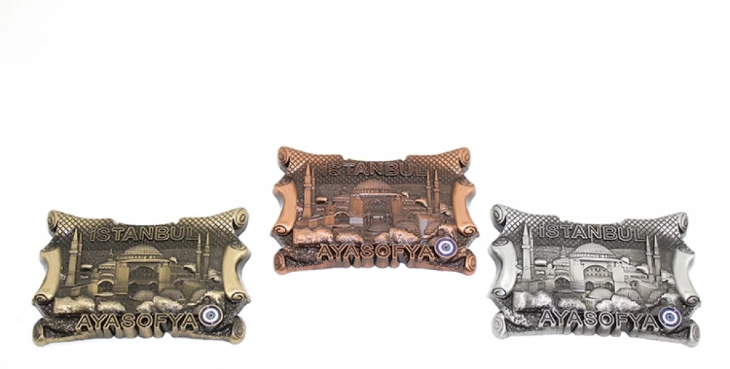İSTANBUL YÖRESEL MAGNET MODEL 5 Ürün Özellikleriİstanbul Yöresel Magnet Model 5, İstanbul’un en ünlü simgelerinden Ayasofya'yı zarif bir şekilde sergileyen şık ve dekoratif bir üründür. Dayanıklı metal malzeme kullanılarak üretilmiş olup, uzun ömürlü kullanım sunar. Ayasofya figürü, İstanbul’un tarihi ve kültürel zenginliğini estetik bir biçimde evinize veya ofisinize taşır. Mıknatıslı özellik sayesinde, bu magnet buzdolabı veya metal yüzeylere kolayca yapışır ve her zaman kullanıma hazır olur. Hem dekoratif hem de anlamlı bir hediye seçeneği sunar.Paket İçeriği1 adet İstanbul Yöresel Magnet Model 5