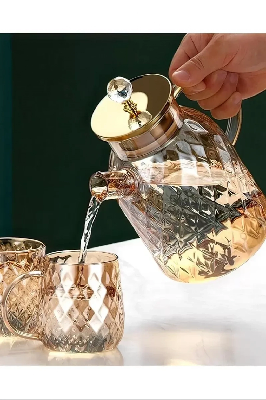 Kabartmalı Borosilikat Cam Demlik 1000ML Royaleks-CM-2006