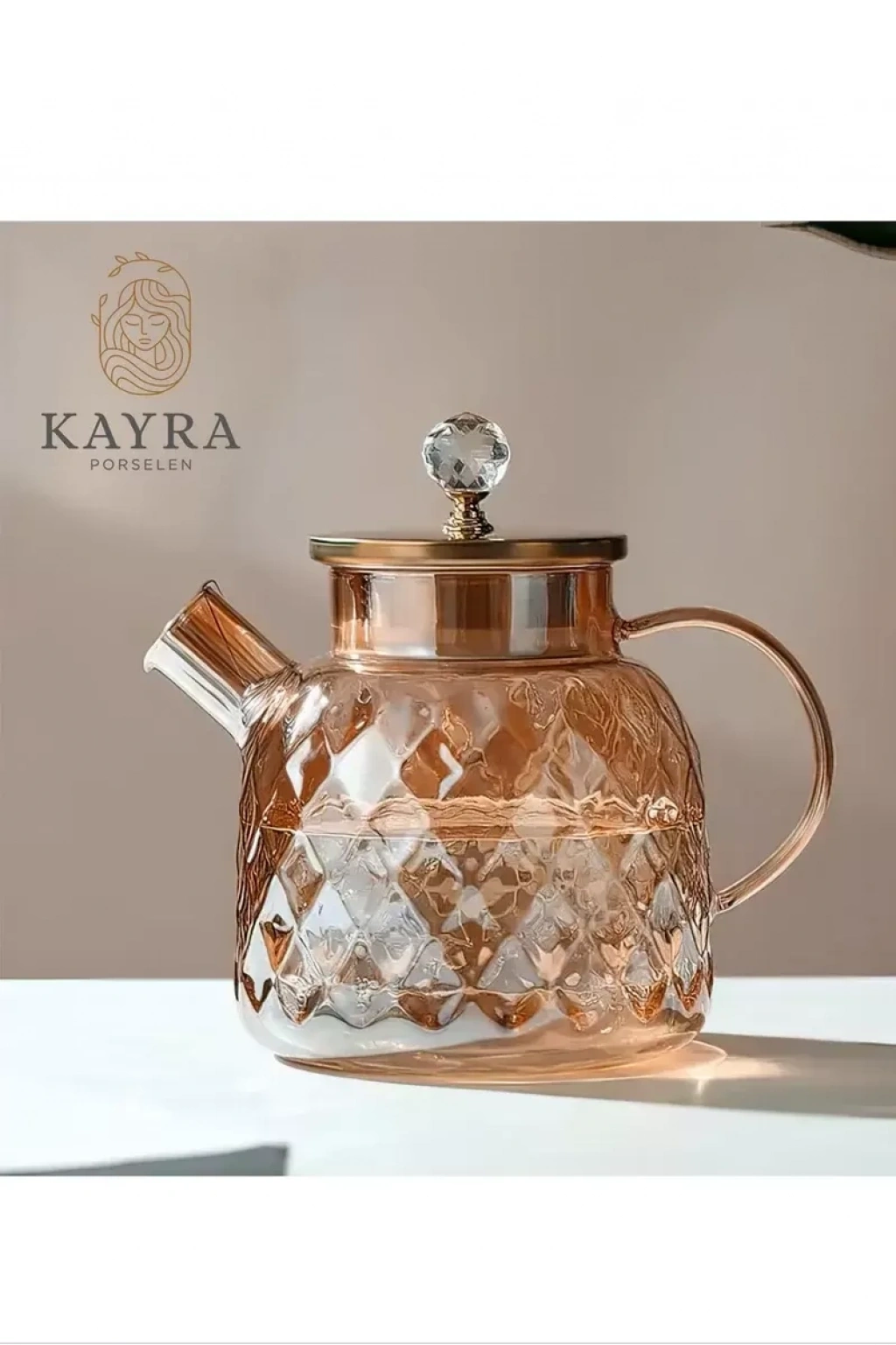Kabartmalı Borosilikat Cam Demlik 1000ML Royaleks-CM-2006