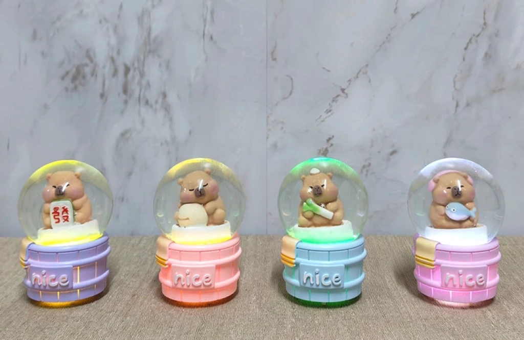 KAPİBARA TASARIMLI IŞIKLI KAR KÜRESİ Ürün ÖzellikleriKapibara tasarımlı ışıklı kar küresi, sevimli ve dekoratif görünümüyle hem çocukların hem de yetişkinlerin ilgisini çeken özel bir süs objesidir. 9x6,5 cm ölçülerindeki kompakt yapısı sayesinde masa üstü, raf, vitrin, komodin veya çalışma masası gibi birçok alanda rahatlıkla kullanılabilir. Küre içerisinde yer alan kapibara figürü, detaylı işçiliği ve pastel tonlardaki renkleriyle sıcak ve eğlenceli bir atmosfer oluşturur. Dahili ışık özelliği sayesinde kar küresi çalıştırıldığında iç kısmı yumuşak bir şekilde aydınlanır ve dekorasyona hoş bir ambiyans katar. Işıklı yapısı özellikle loş ortamlarda dikkat çekici bir görünüm sunar ve gece lambası tarzında dekoratif bir tamamlayıcı olarak da değerlendirilebilir. Kar küresi sallandığında içerisindeki sim ve kar efekti hareket ederek görsel şölen oluşturur. Dayanıklı malzemeden üretilmiş olup uzun süreli kullanım için uygundur. Renk seçimi yapılamaz, ürün görsellerde yer alan renklerden karışık olarak gönderilir. Doğum günü, yılbaşı, sevgililer günü veya özel günler için hediye alternatifi olarak da tercih edilebilir.Paket İçeriği1 adet Kapibara Tasarımlı Işıklı Kar Küresi