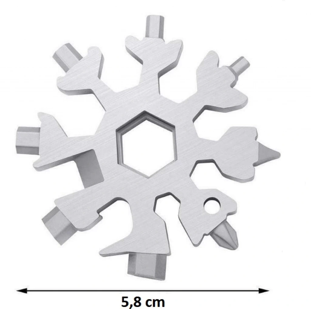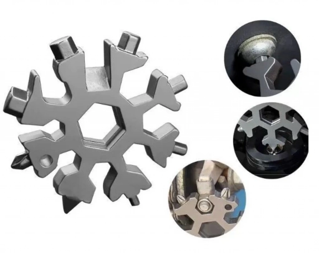 Kar Tanesi Çok Amaçlı Anahtarlık AçacakÜrün ÖzellikleriKar tanesi anahtarları son derece çok yönlüdür. Şişe açacağı, kutu açacağı, tornavida, emniyet çekiç, altıgen anahtar vb. Olarak kullanılabilir.18+1 çeşit düz yıldız tornavida, alyan, civata anahtarı, meşrubat açacağı, koli kesme gibi bir çok işlerinizi tek ürünle çözebilirsiniz.Avuç içine sığan küçük boyutu ile cebinizde veya çantanızda kolaylıkla taşıyabilirsiniz.Paslanmaz çelikten üretilmiştir.Her evde, araçta ve özellikte bisiklette motosiklet gibi ulaşım araçlarında bulunması gereken müthiş bir ürün.Dağcılık veya yürüyüş gibi açık hava sporlarında yanınıza almalısınız. Paket İçeriği1 Adet Kar Tanesi Çok Amaçlı Anahtarlık Açacak