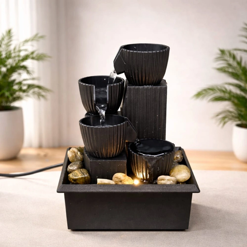 LED IŞIKLI 3 KATLI MASAÜSTÜ DEKORATİF SU ŞELALESİÜrün ÖzellikleriÇalışma ortamınızda veya evinizde huzur dolu bir vaha yaratın! Modern Tasarım LED Işıklı 3 Katlı Masaüstü Su Şelalesi, suyun dinlendirici sesini minimalist bir estetikle buluşturuyor. 17 cm x 11.5 cm boyutlarındaki kompakt tasarımı, onu ofis masanız veya kütüphaneniz için en ideal aksesuarlardan biri yapar. Yüksek kaliteli sert malzemeden üretilen gövdesi, siyahın asaleti ve fincan formundaki katmanlı yapısıyla modern dekorasyon tarzlarına mükemmel uyum sağlar. USB bağlantısı ile pratik bir şekilde çalışan bu şelale, havuz kısmına eklenen suyla birlikte sessiz motoru sayesinde devirdaime başlar. Alt kısımdaki LED ışıklandırma, suyun akışını yumuşak bir parıltıyla aydınlatarak gece kullanımında büyüleyici bir görsellik sunar. Paket içinden çıkan doğal dekoratif taşlar, şelalenin tabanına organik bir dokunuş katar. Hem stresli anlarda sakinleşmek için bir meditasyon aracı hem de sevdikleriniz için prestijli bir hediye arıyorsanız, bu dekoratif şelale doğru tercih olacaktır.Ürün Teknik ÖzellikleriÖzellikAçıklamaBoyutlar17 cm (Yükseklik) x 11.5 cm (Genişlik)MalzemeDayanıklı Birinci Sınıf Sert PolimerGüç KaynağıUSB Kablosu (Kablo dahildir)AydınlatmaBütünleşik Soft LED IşıkTasarım3 Katlı Modern Fincan FormuKullanım AlanıOfis Masası, Ev Dekorasyonu, Meditasyon KöşesiÇalışma ŞekliHafif Motor Sesli Devirdaim SistemiPaket İçeriği1 Adet LED Işıklı 3 Katlı Masaüstü Dekoratif Su Şelalesi
