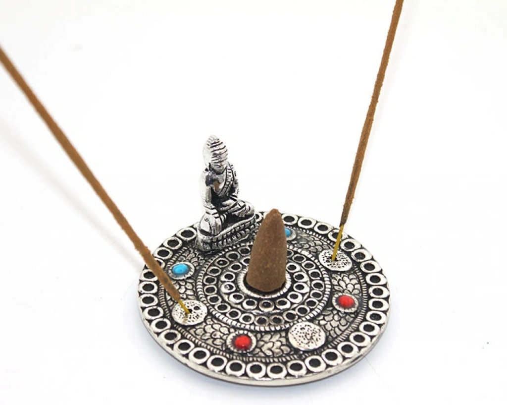 METAL YUVARLAK BUDALI TÜTSÜLÜK MODEL 2Ürün ÖzellikleriMetal yuvarlak Budalı tütsülük model 2, mistik ve spiritüel atmosfer yaratmak isteyenler için özel olarak tasarlanmış bir tütsülük modelidir. Dayanıklı metal malzemeden üretilmiş olup, uzun ömürlü kullanım sunar. Yuvarlak formdaki detaylı işçiliği, tütsü çubuğunu ve konik tütsüyü sabit bir şekilde tutarak güvenli ve temiz bir kullanım sağlar. Merkezde bulunan oturan Buda figürü, huzur, bilgelik ve içsel dengeyi simgeleyen mistik bir semboldür. Renkli taş detayları, tütsülüğe şık ve dekoratif bir hava katarken, meditasyon, yoga ve enerji çalışmalarında rahatlatıcı bir ortam oluşturmak için idealdir**. Kompakt ve estetik tasarımı sayesinde ev, ofis ve manevi alanlarda dekoratif bir obje olarak da kullanılabilir.Paket İçeriği1 adet Metal Yuvarlak Budalı Tütsülük Model 2