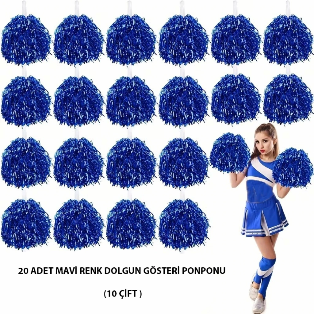 Mey İthalat® 10 Çift ( 20 Adet ) Mavi Renk 23 Nisan 19 Mayıs 29 Ekim Okul Gösteri Ponponları