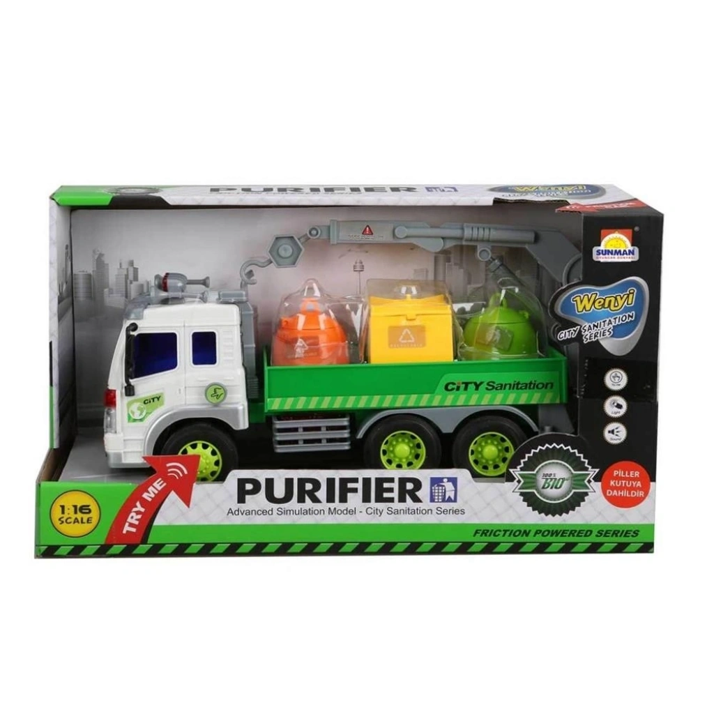 Mey İthalat® 13078 SUN-YFN 1:16 GERİ DÖNÜŞÜM KAMYONLARI IŞIKLI