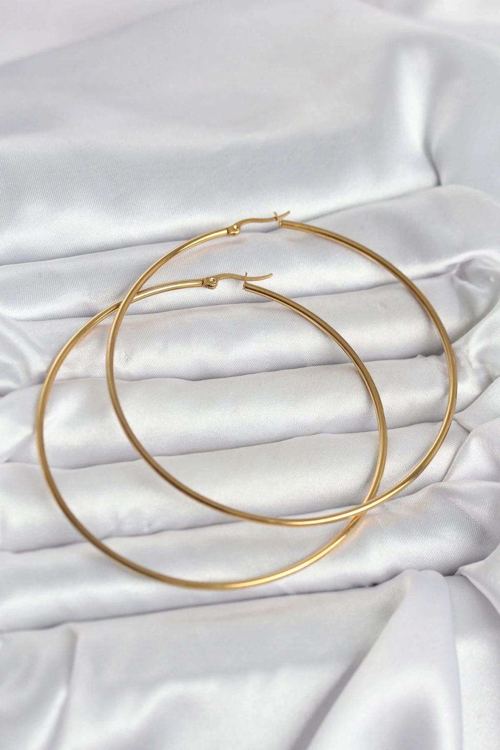 Mey İthalat® 316L Çelik Gold Renk 70 mm Kadın Halka Küpe