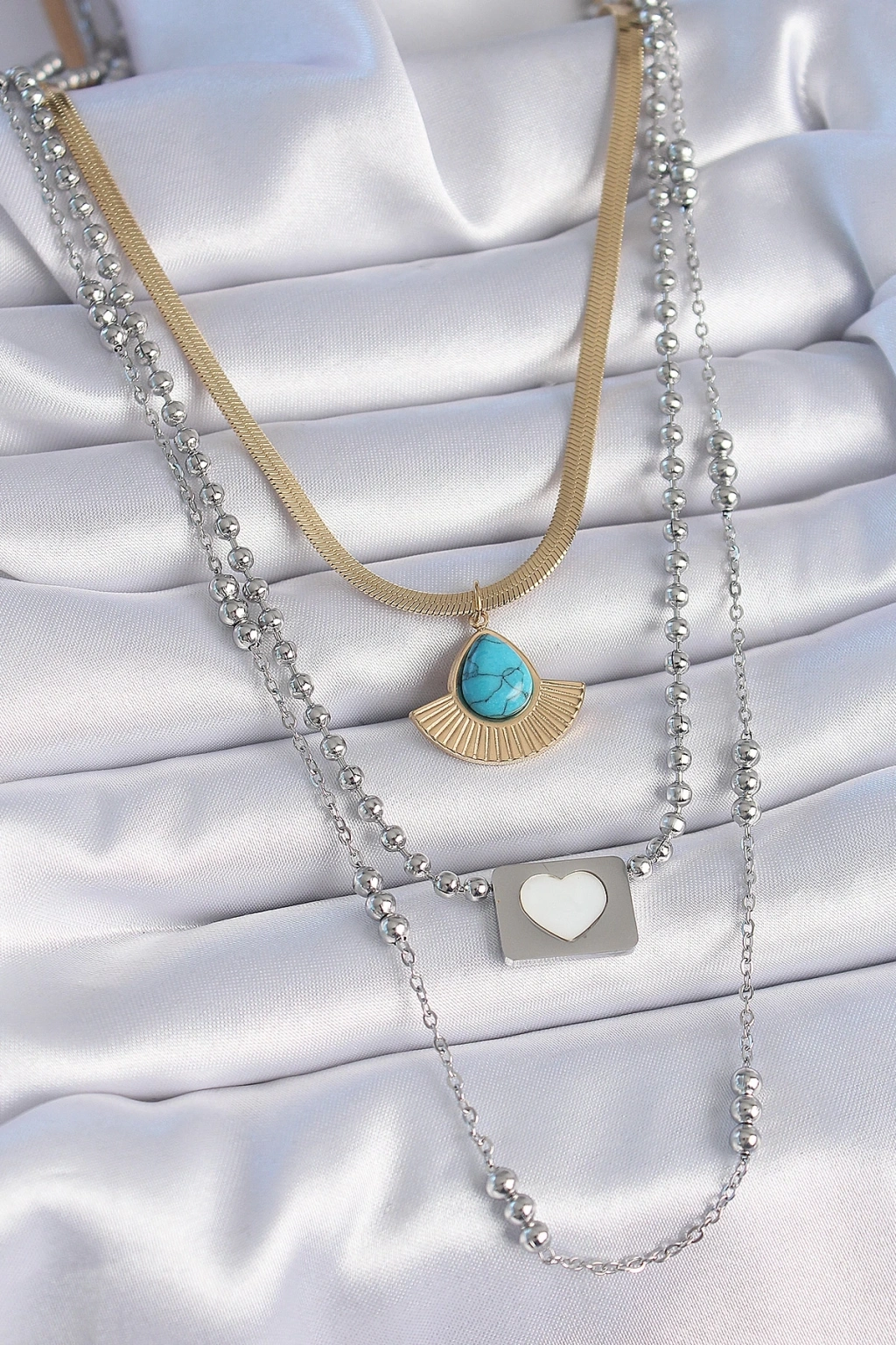 Mey İthalat® 316L Çelik Mix Renk 3'lü Zincir Damla Madalyon Figür Uzun Kadın Kolye