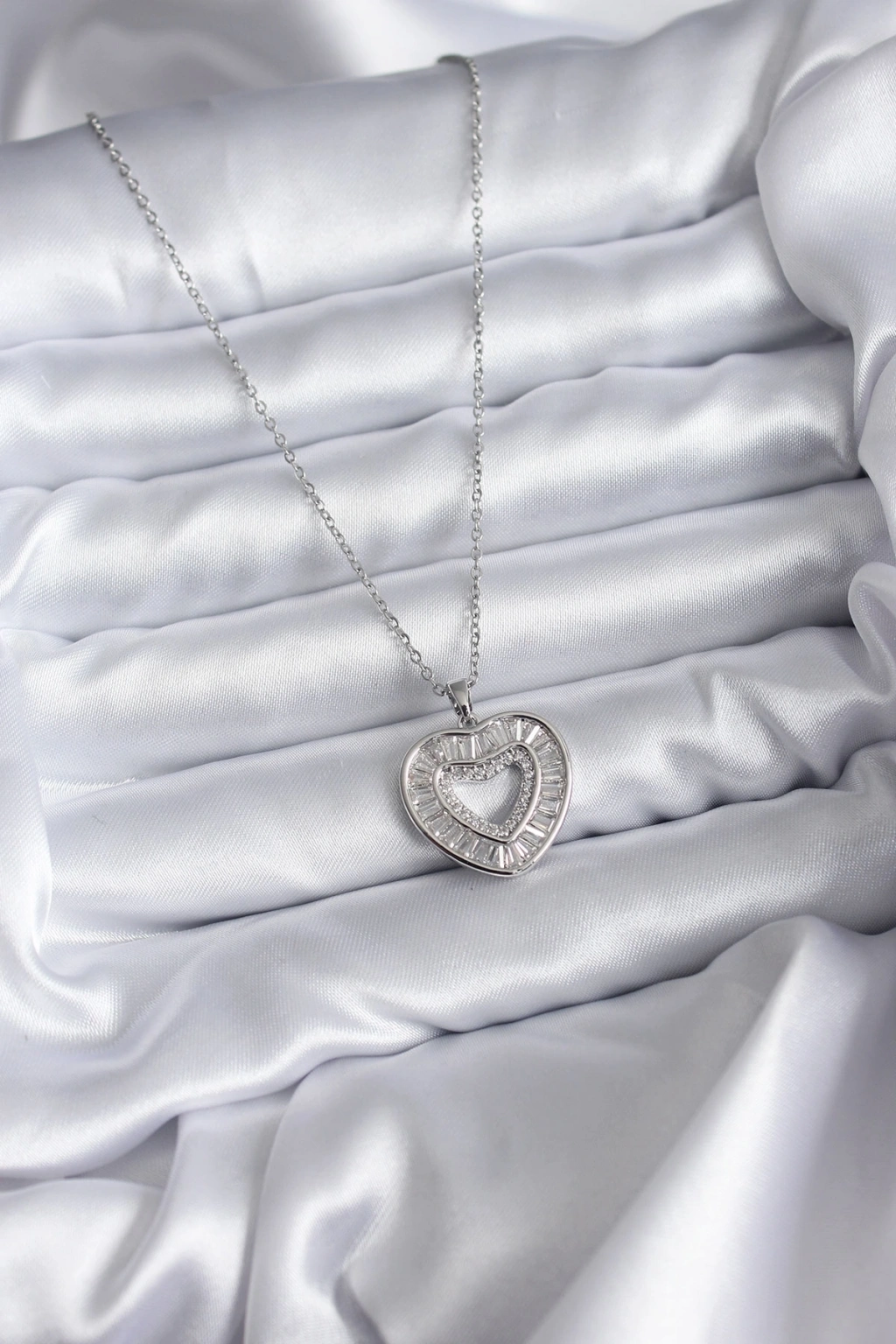 Mey İthalat® Vip Seri Pirinç Çift Renk Zirkon Taşlı Kalp Tasarımlı Kolye