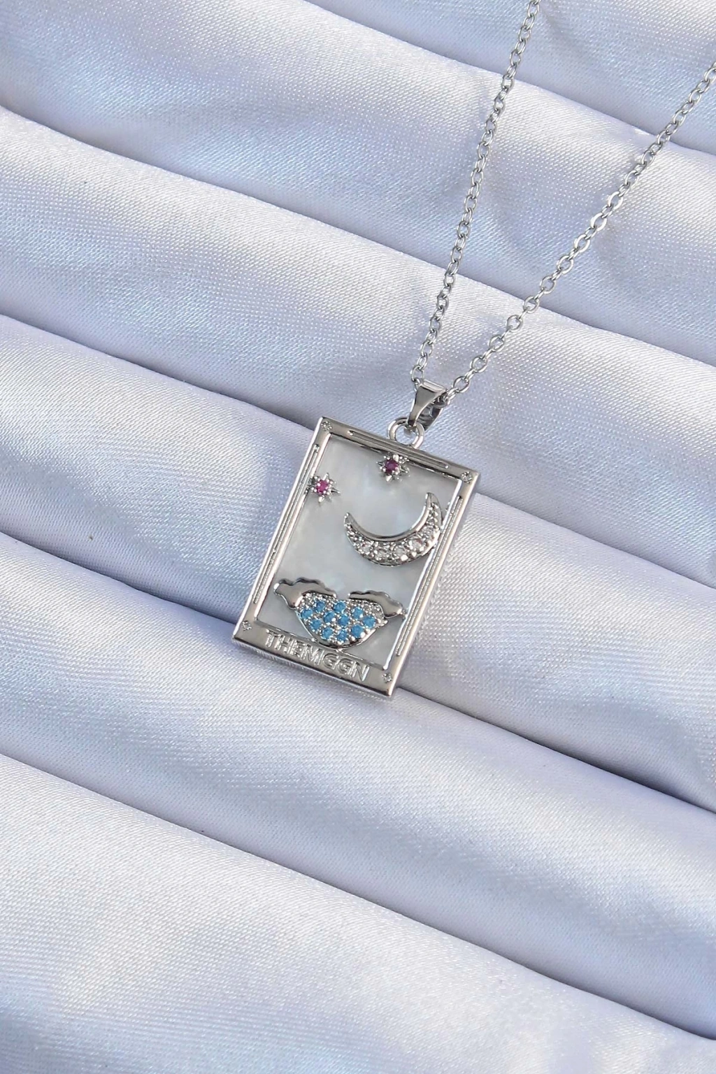 Mey İthalat® 316L Çelik Zincir Gümüş Renk Zirkon Taşlı Ay Figürlü Tarot Kolye