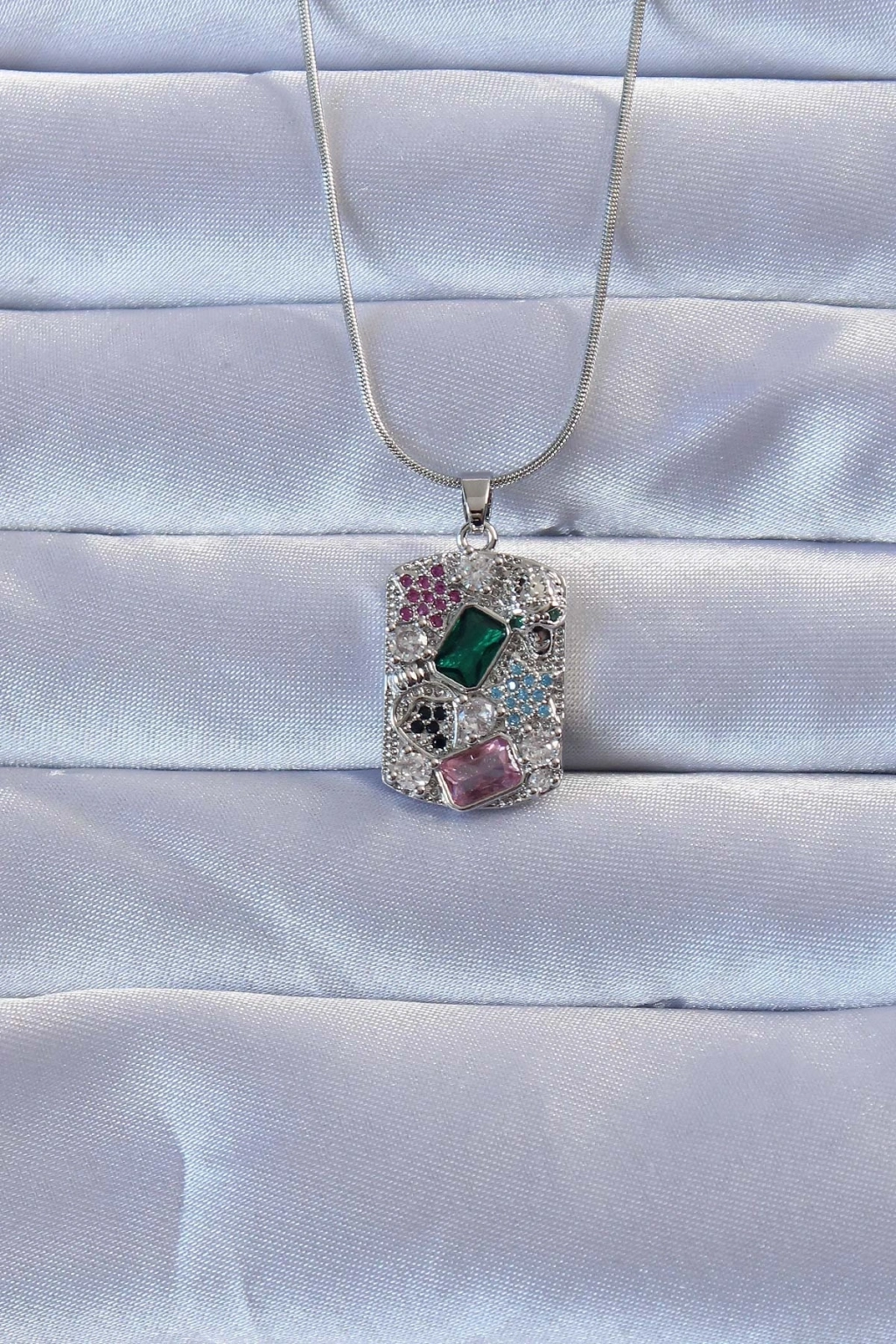 Mey İthalat® 316L Gümüş Renk Çok Renkli Zirkon Taşlı Vintage Kolye