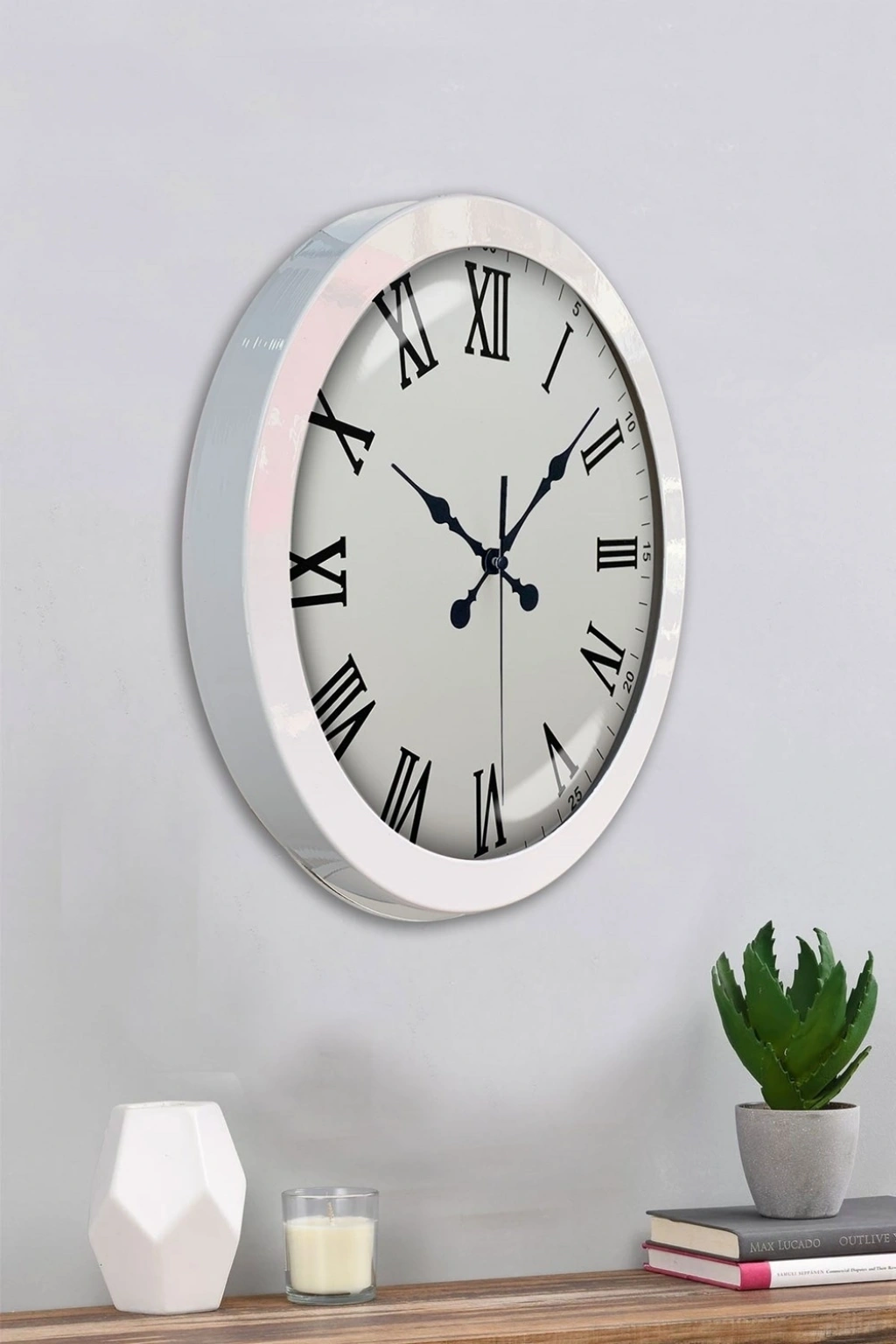 Mey İthalat® 36 cm Beyaz Metal Roma Rakamlı Duvar Saati