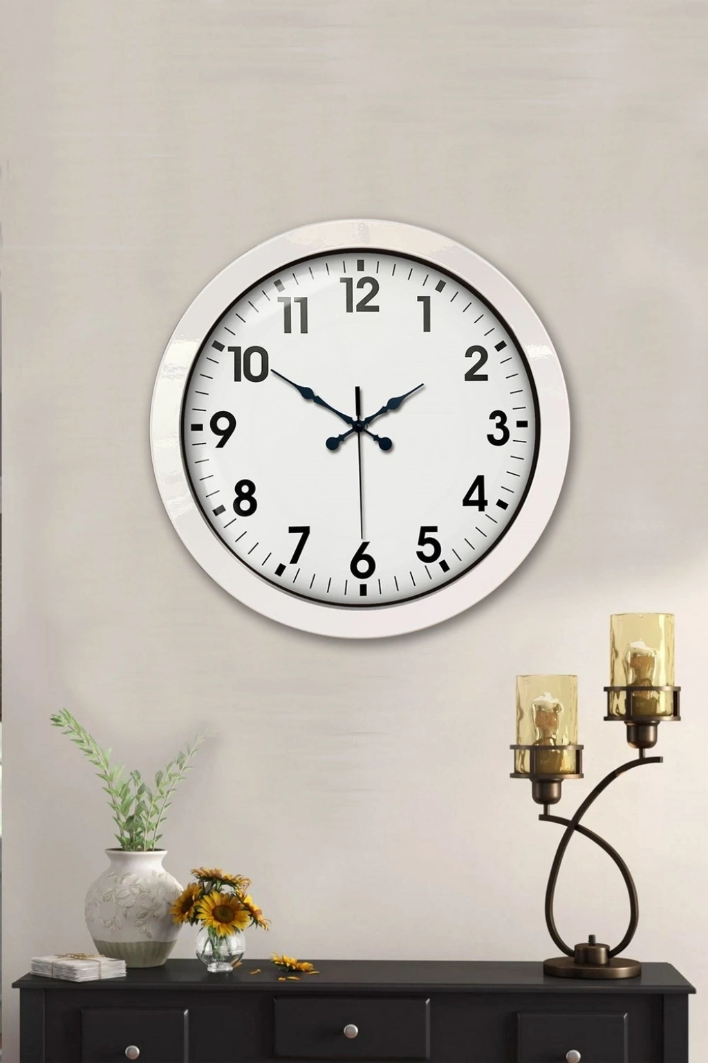 Mey İthalat® 36 cm Beyaz Metal Standart Duvar Saati