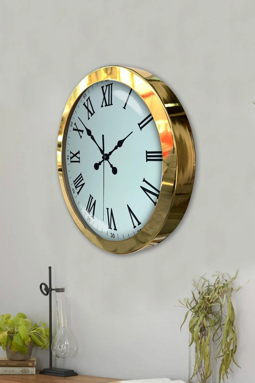 Mey İthalat® 36 cm Gold Metal Roma Rakamlı Duvar Saati