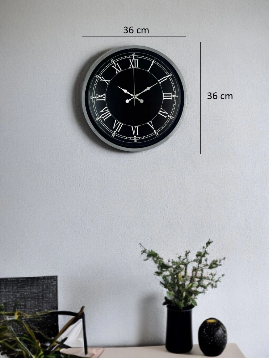 Mey İthalat® 36 Cm Gri Roma Rakamlı Zarif Duvar Saati