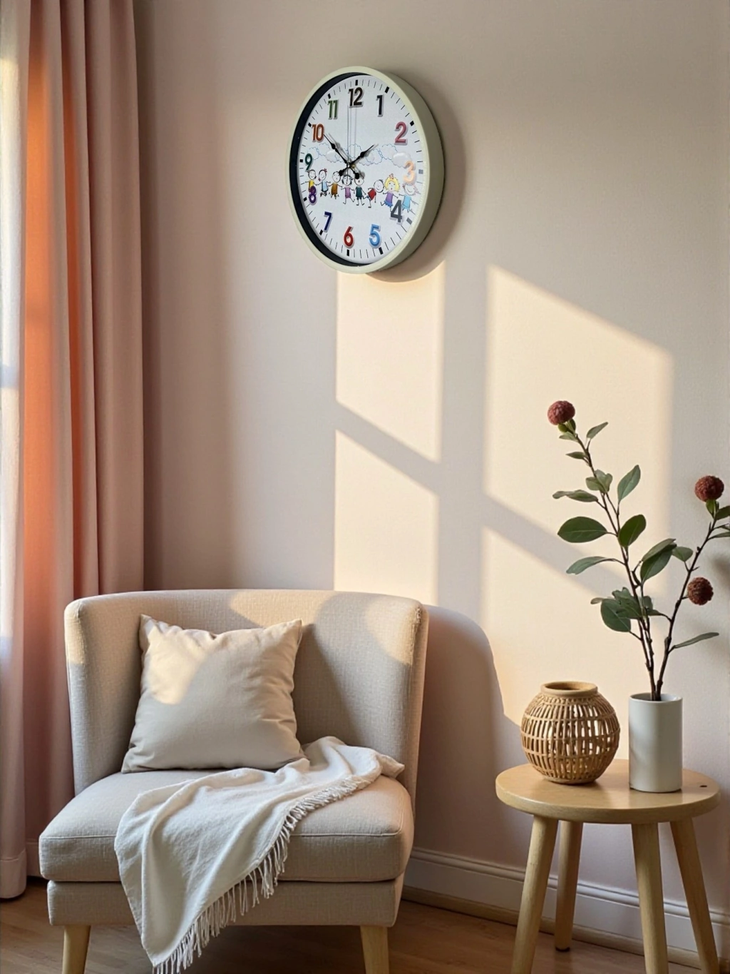 Mey İthalat® 36 Cm Krem Çocuk Odası Duvar Saati