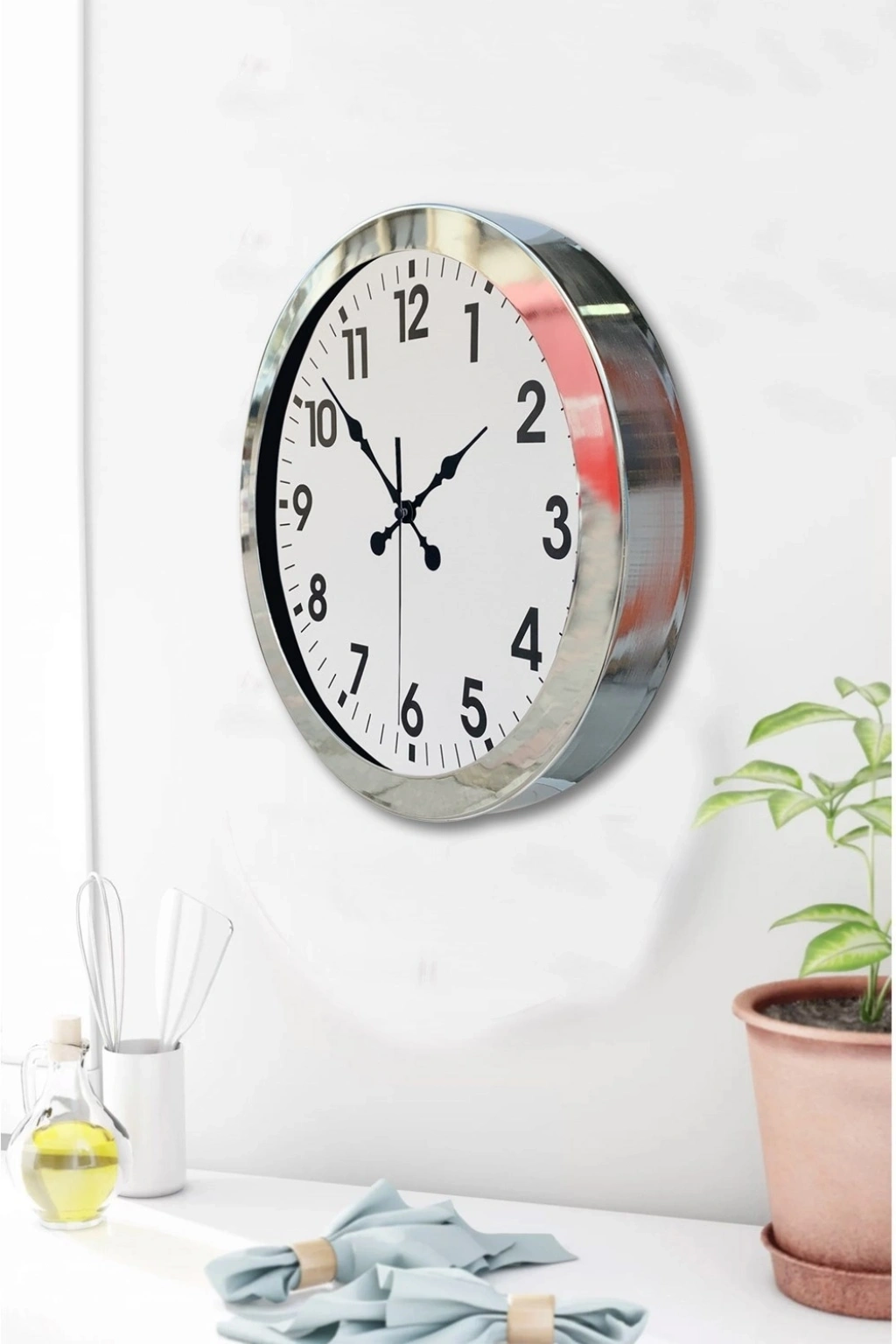 Mey İthalat® 36 cm Krom Metal Standart Duvar Saati