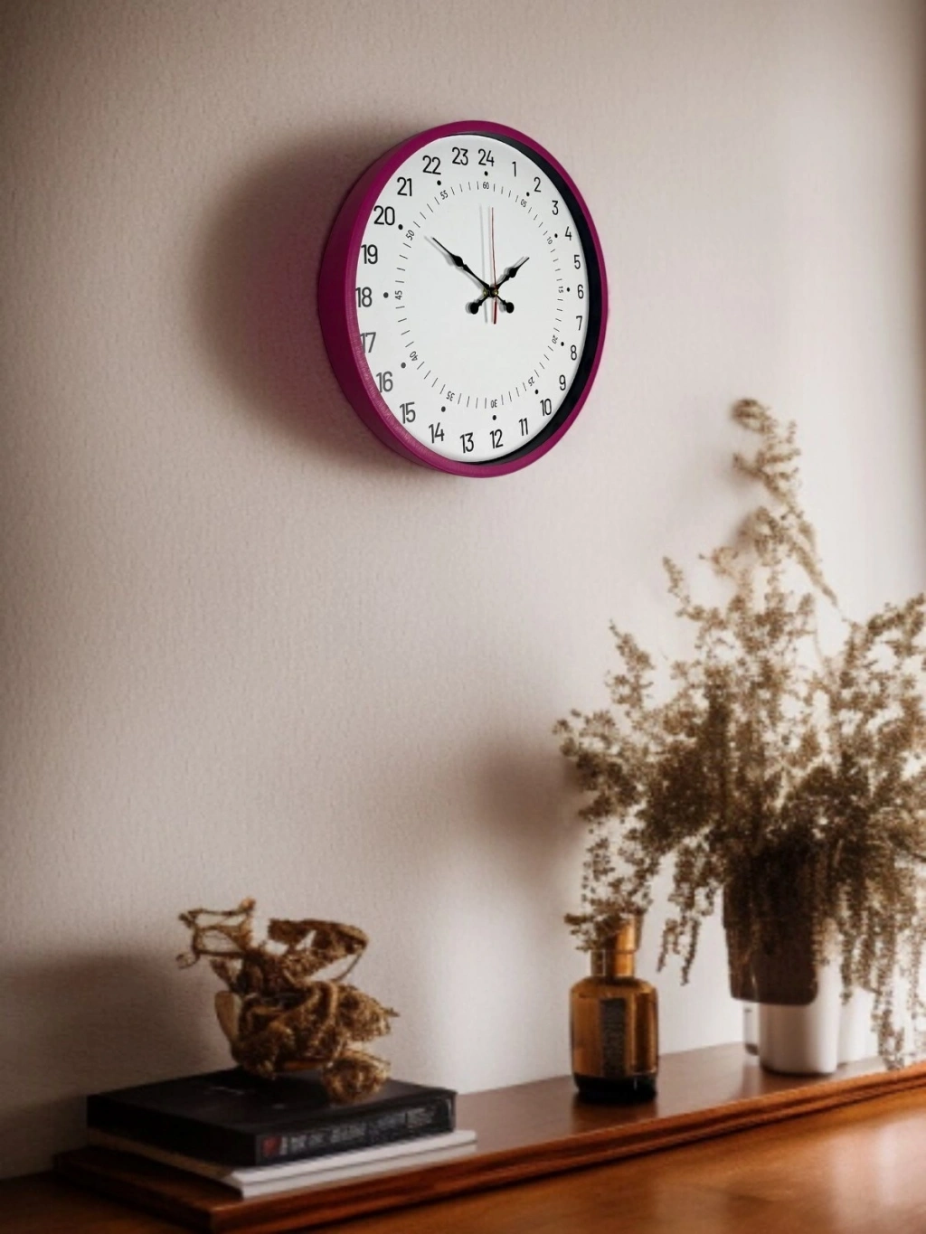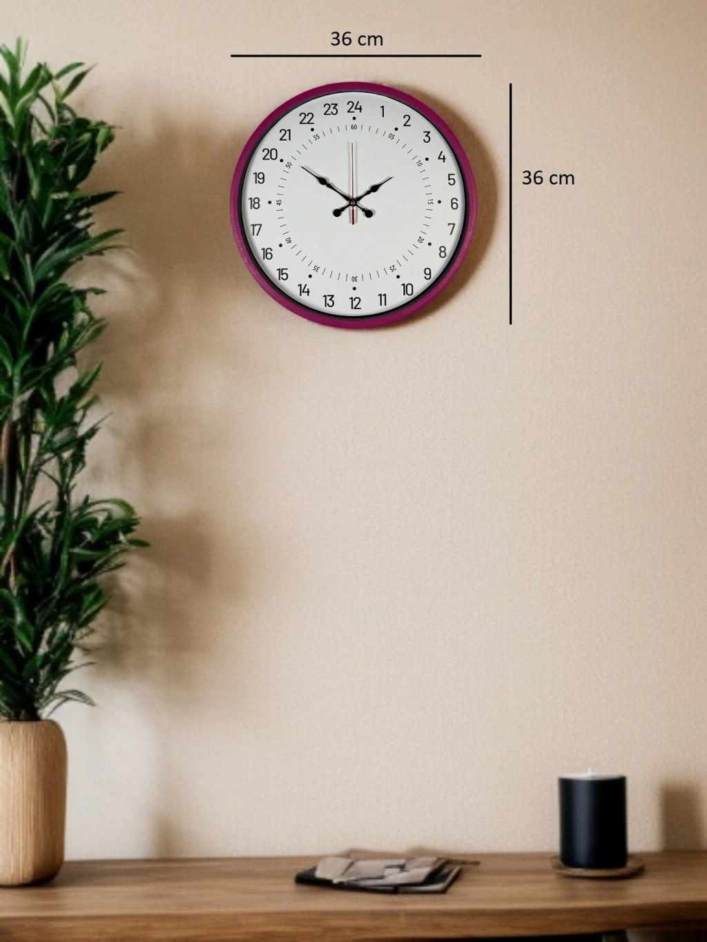 Mey İthalat® 36 Cm Pembe 24 Saat Göstergeli Özel Tasarım Duvar Saati