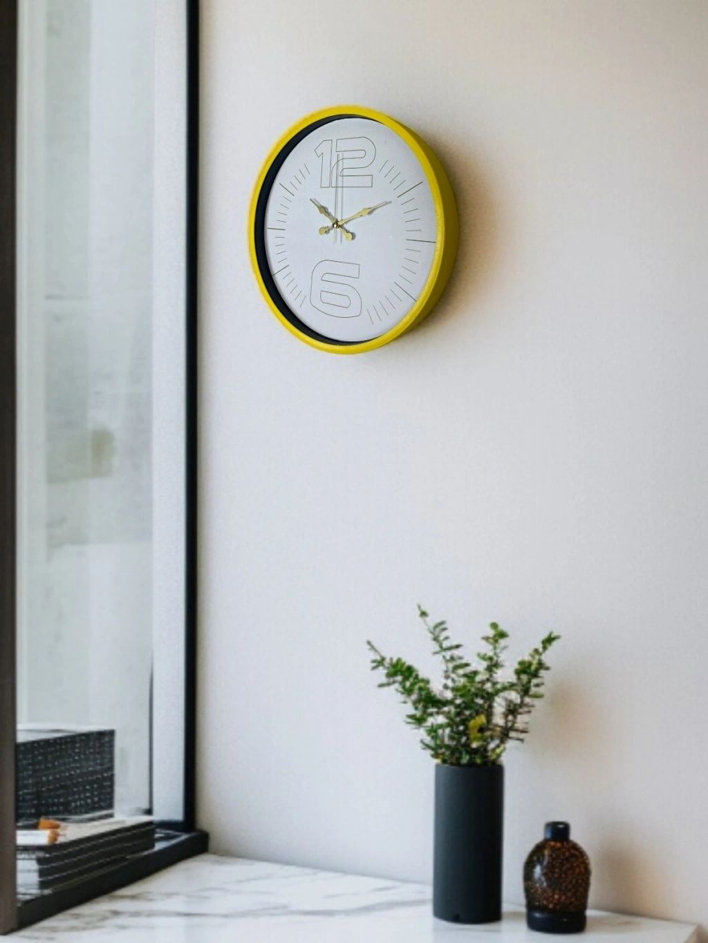 Mey İthalat® 36 Cm Sarı Dekoratif Duvar Saati
