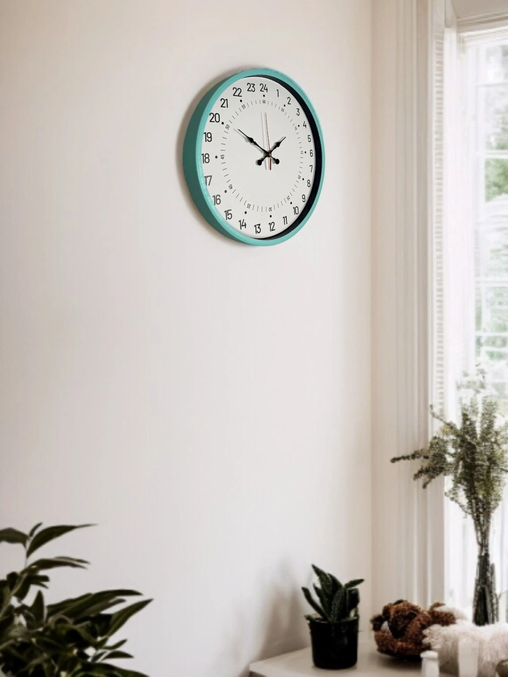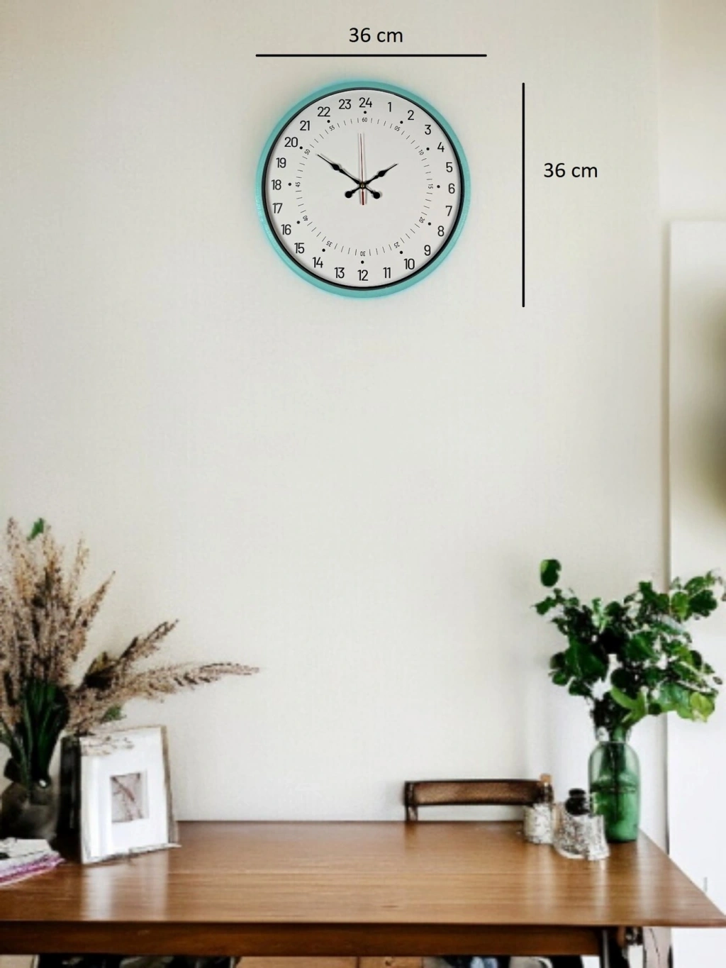 Mey İthalat® 36 Cm Turkuaz 24 Saat Göstergeli Özel Tasarım Duvar Saati