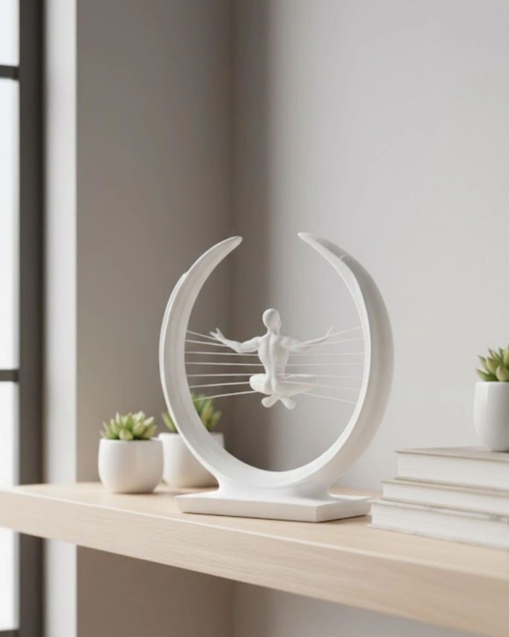Mey İthalat® 3D Zen Heykeli Beyaz Ay İçinde Meditasyon Figürü Dekoratif Obje