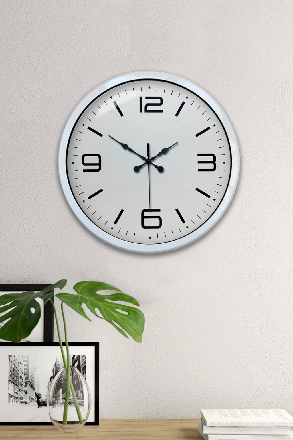 Mey İthalat® 40 cm Beyaz Metal Modern Duvar Saati