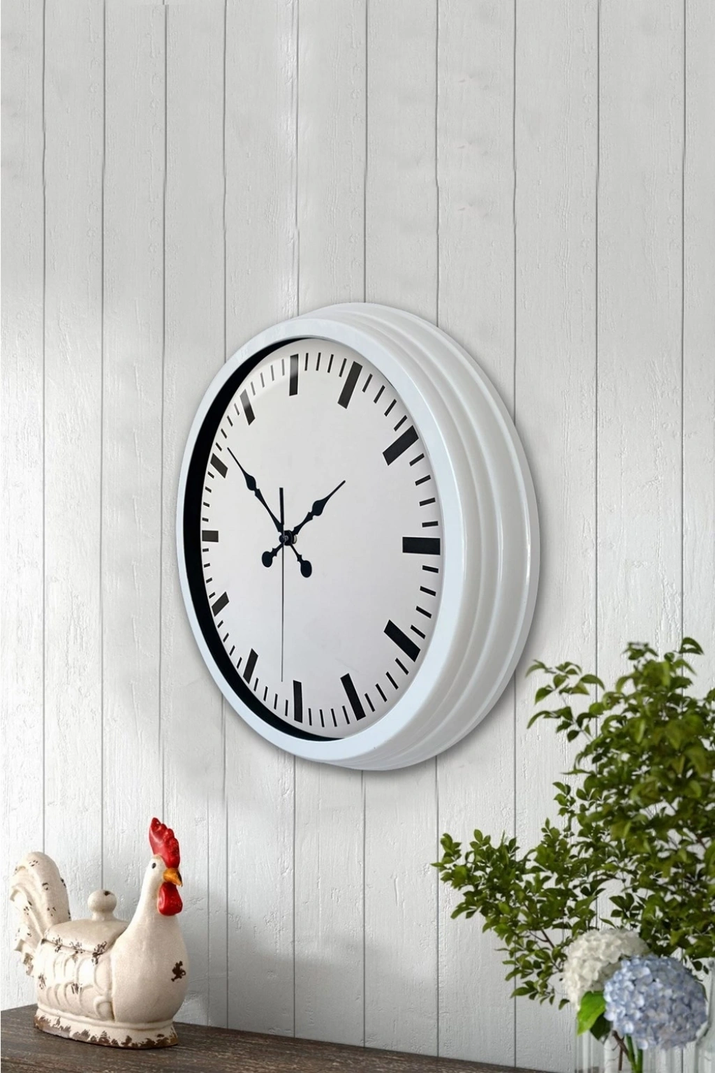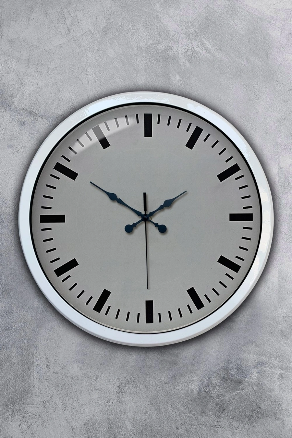 Mey İthalat® 40 cm Beyaz Metal Sade Duvar Saati