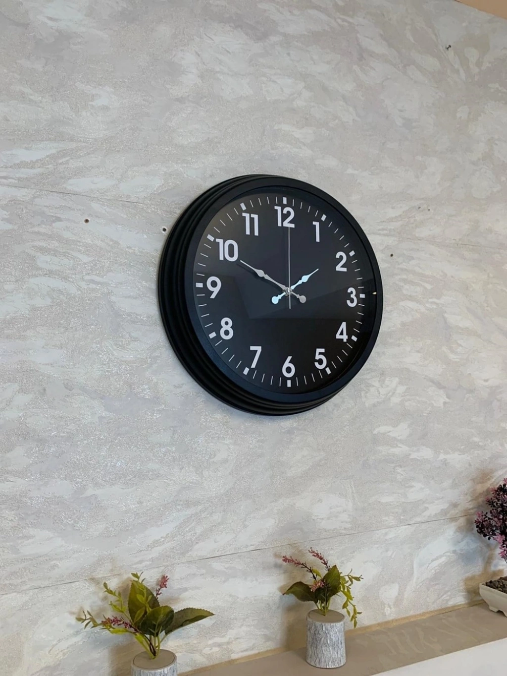 Mey İthalat® 40 cm Siyah Metal Siyah Kadran Duvar Saati