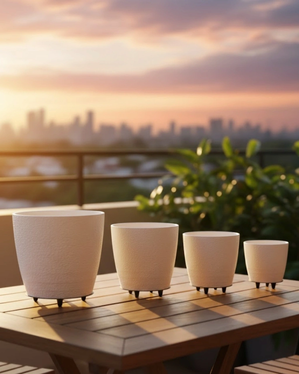 Mey İthalat® 4’lü 3D Modern Beyaz Vazo Takımı Ayaklı Dekoratif Saksı Seti