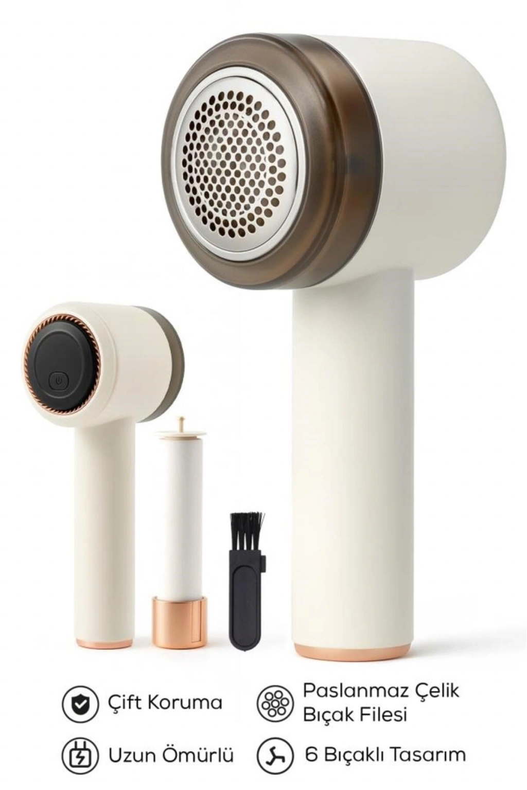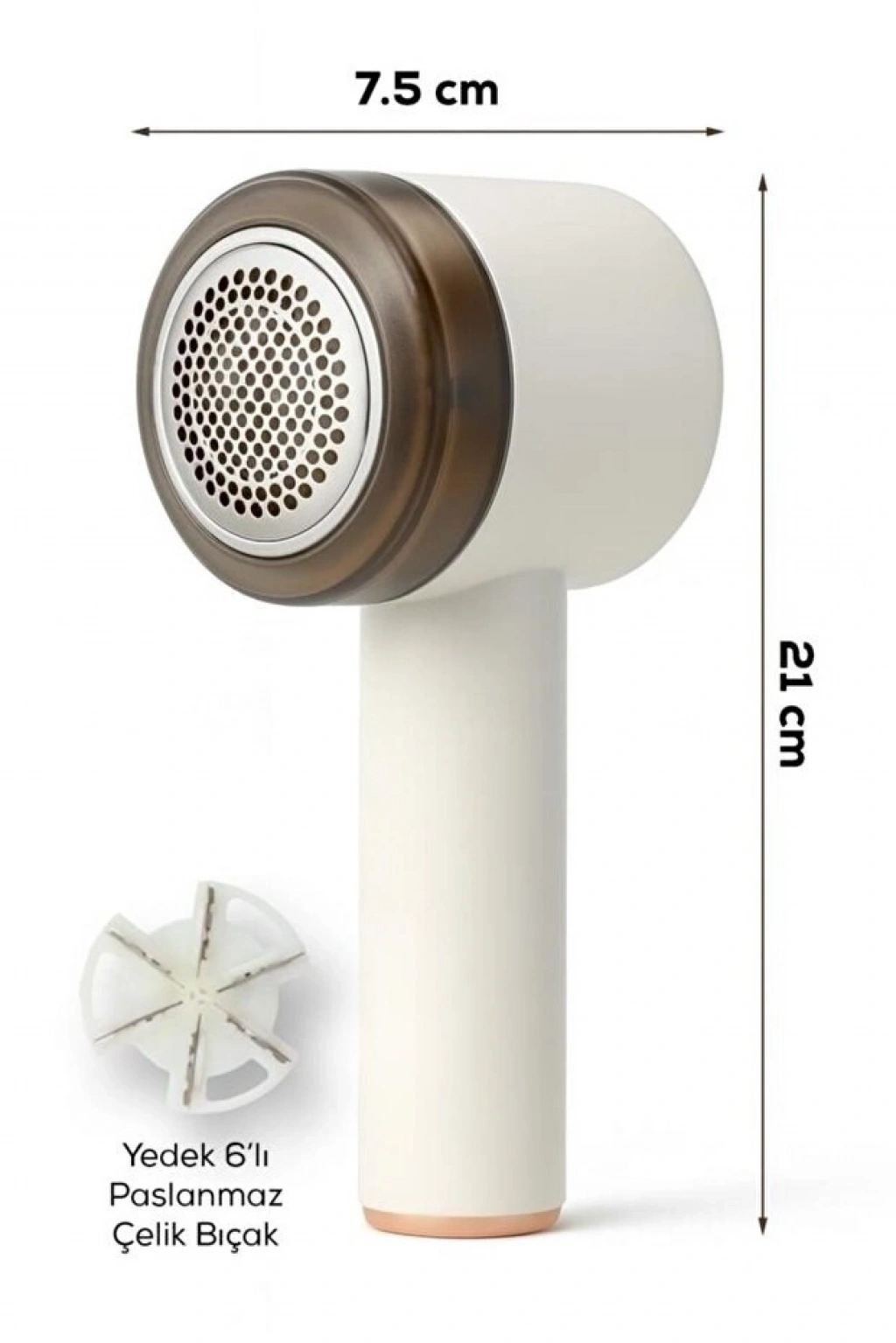 Mey İthalat® 6 Bıçaklı Şarjlı Tüy Ve Tiftik Temizleme Makinesi Beyaz Yuvarlak Tasarım YEDEK BIÇAKLI