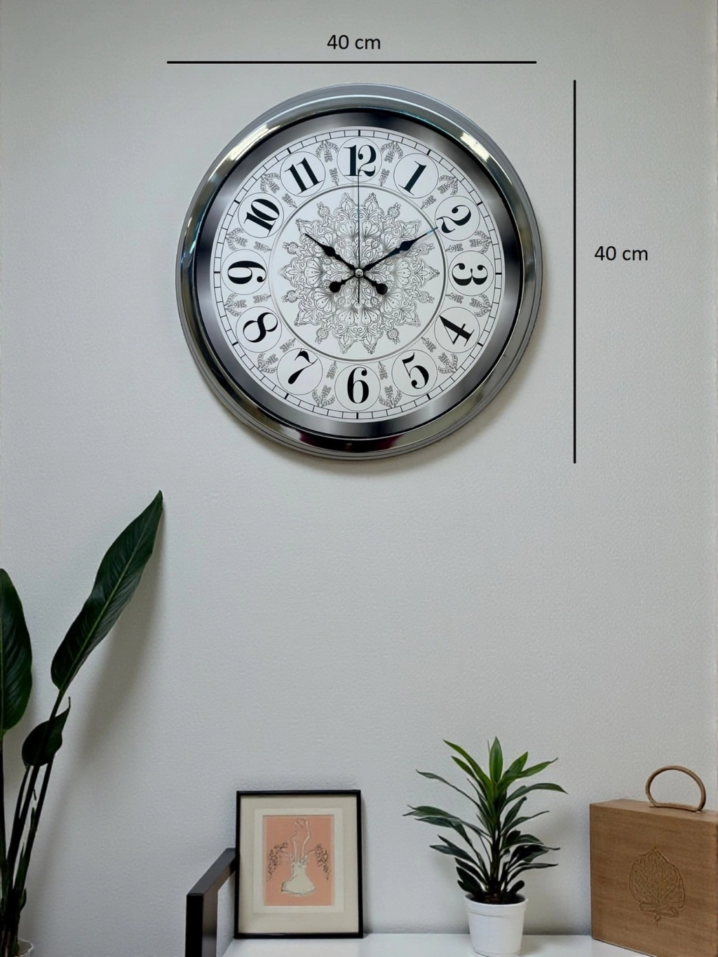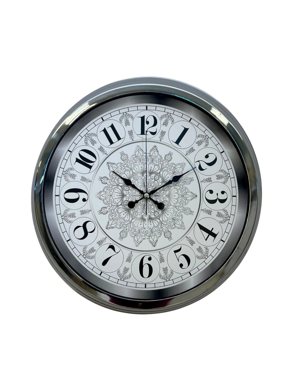 Mey İthalat® Asil Motif Krom 40 Cm Metal Duvar Saati