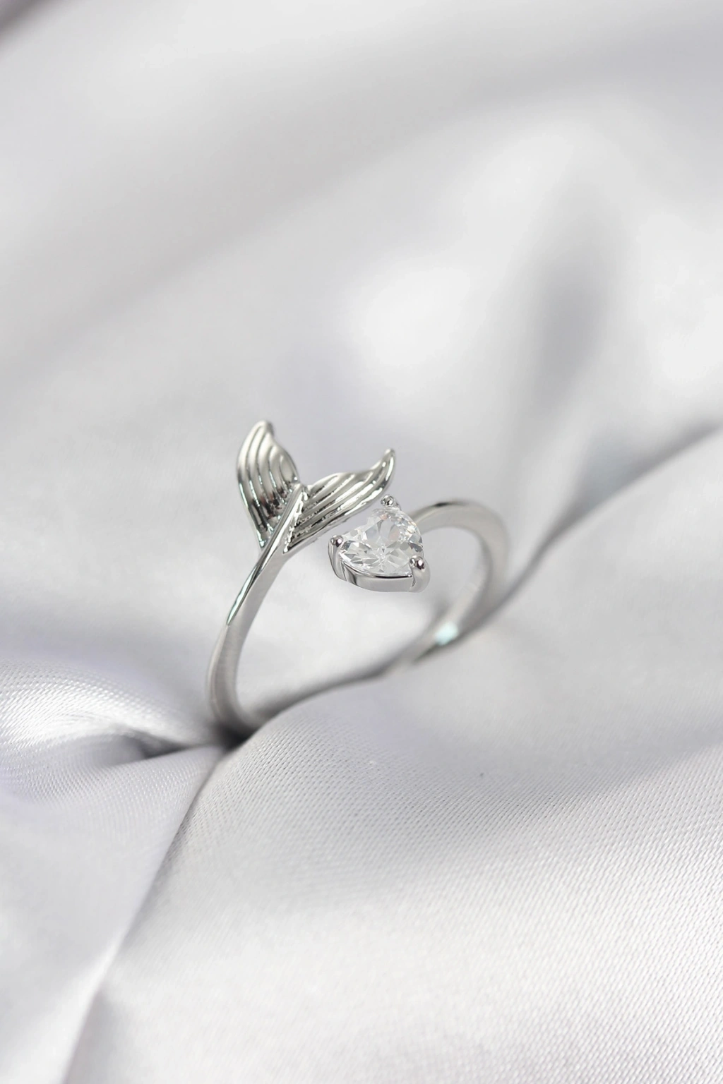 Mey İthalat® Balık Kuyruğu Model Gümüş Renk Zirkon Taşlı Kadın Yüzük