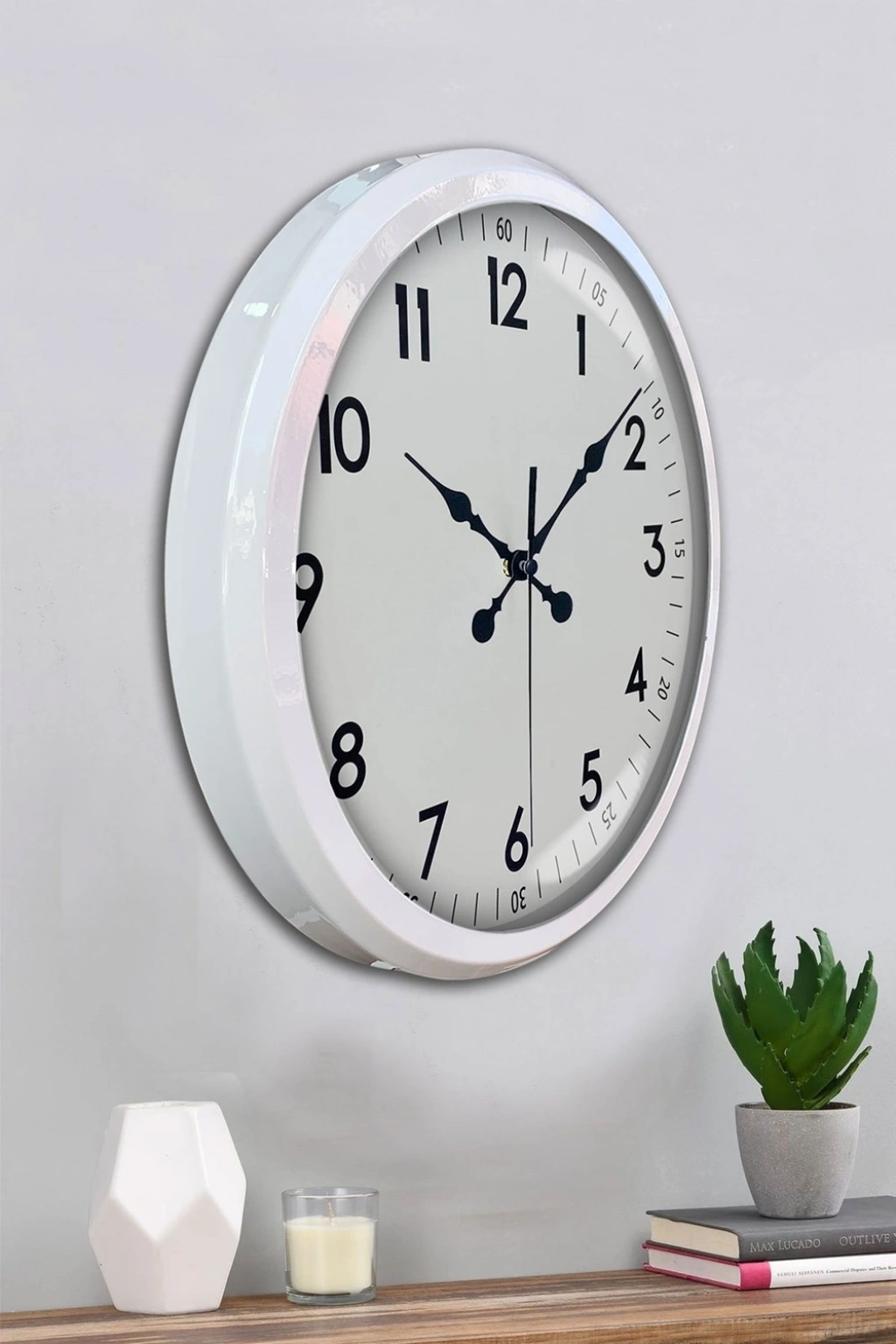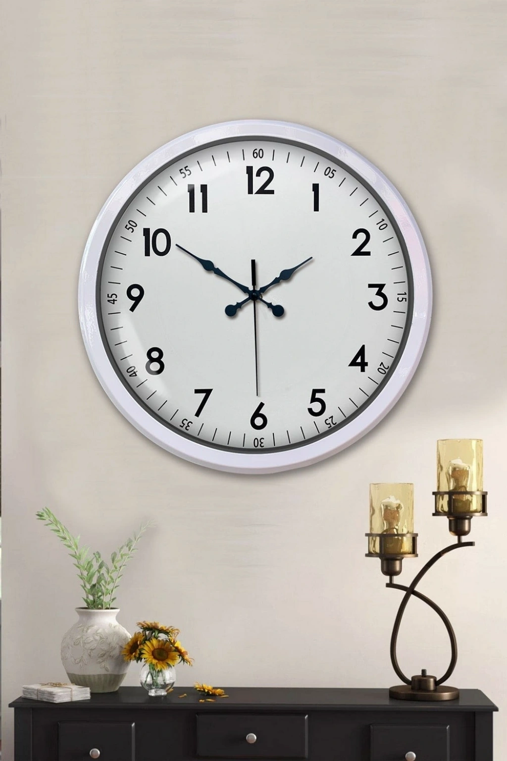 Mey İthalat® Beyaz Dekoratif Stil 52 Cm Metal Duvar Saati