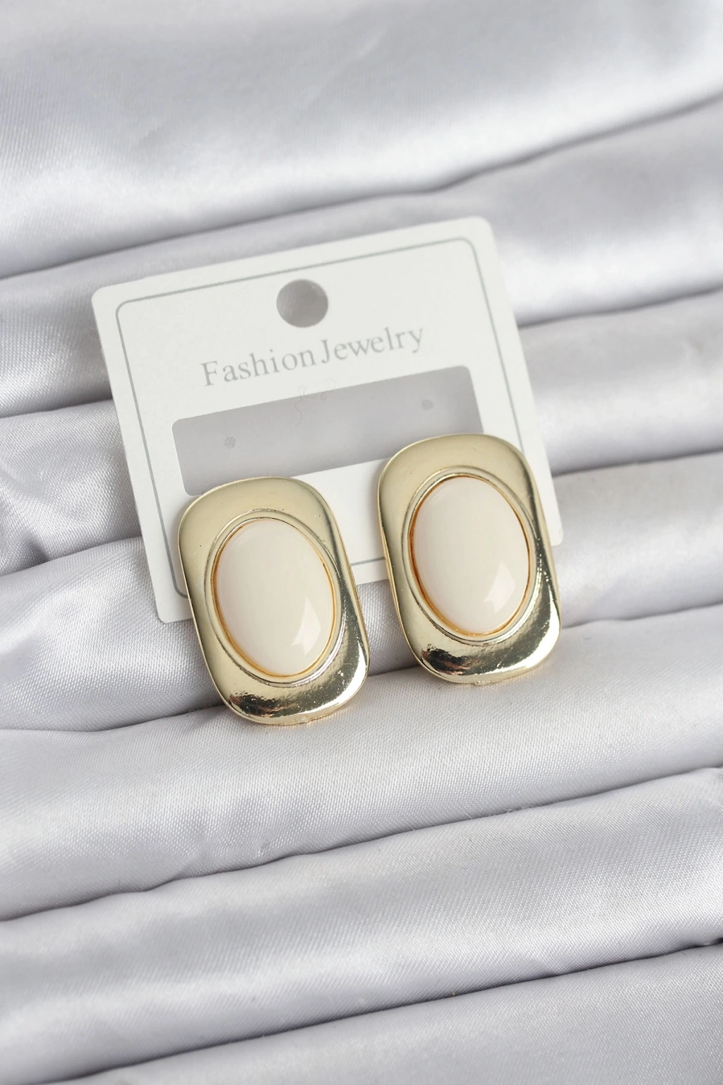 Mey İthalat® Beyaz Renk Kare Model Vintage Kadın Küpe