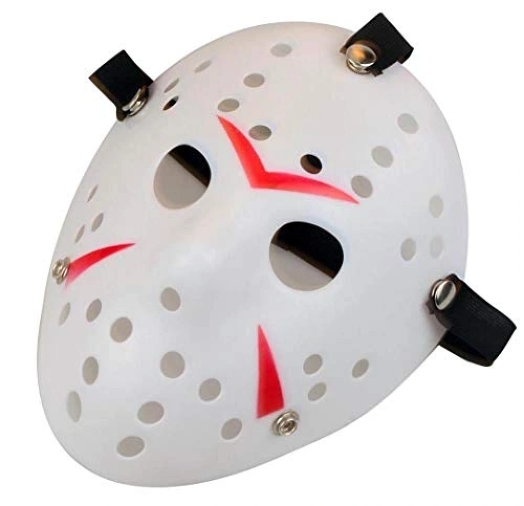 Mey İthalat® Beyaz Renk Kırmızı Çizgili Tam Yüz Hokey Jason Maskesi Hannibal Maskesi