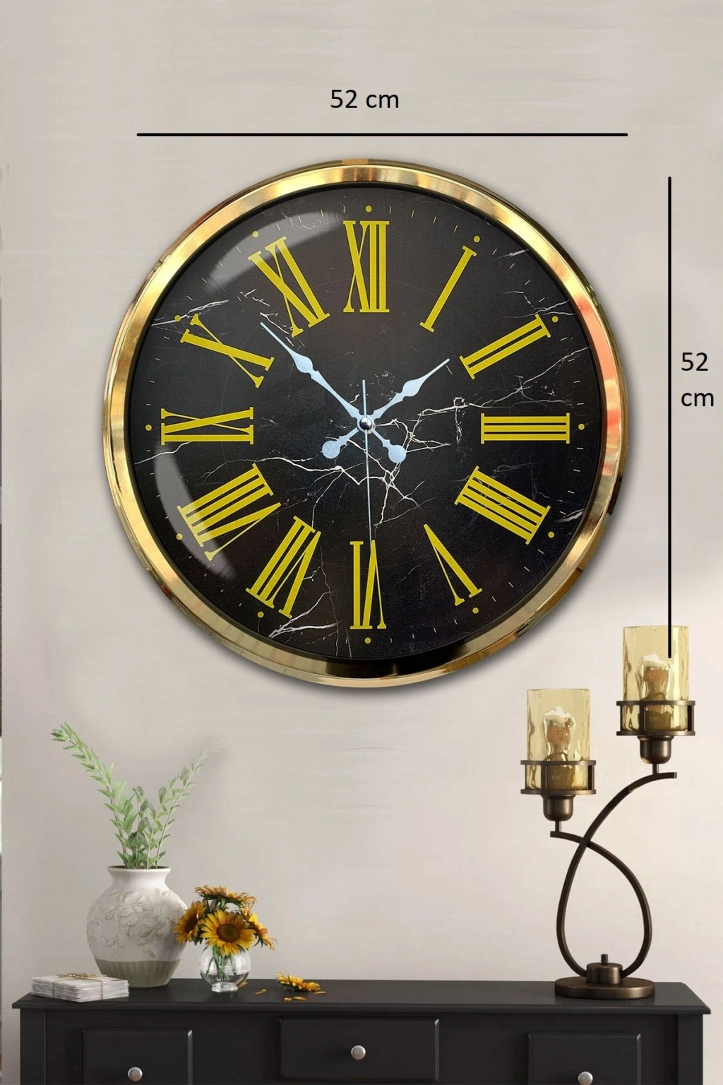 Mey İthalat® Black Marble Gold 52 Cm Metal Duvar Saati
